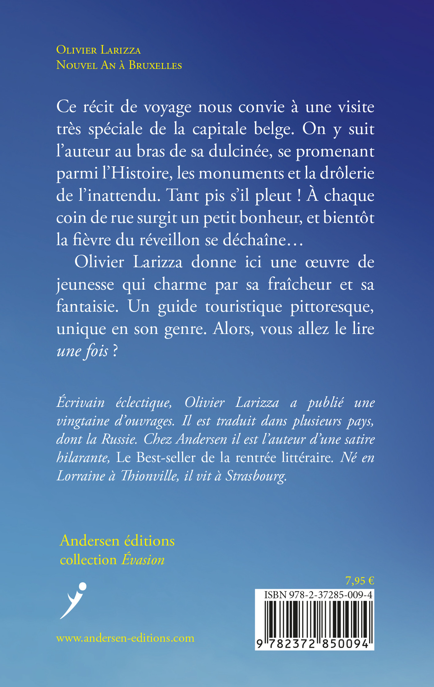 [Olivier Larizza, né à Thionville, est un auteur prolixe et éclectique, traduit dans une dizaine de pays, dont la Russie et l’Iran. Chez Andersen il a notamment publié « Le Best-seller de la rentrée littéraire », une satire désopilante sur le monde des livres et des écrivains.]