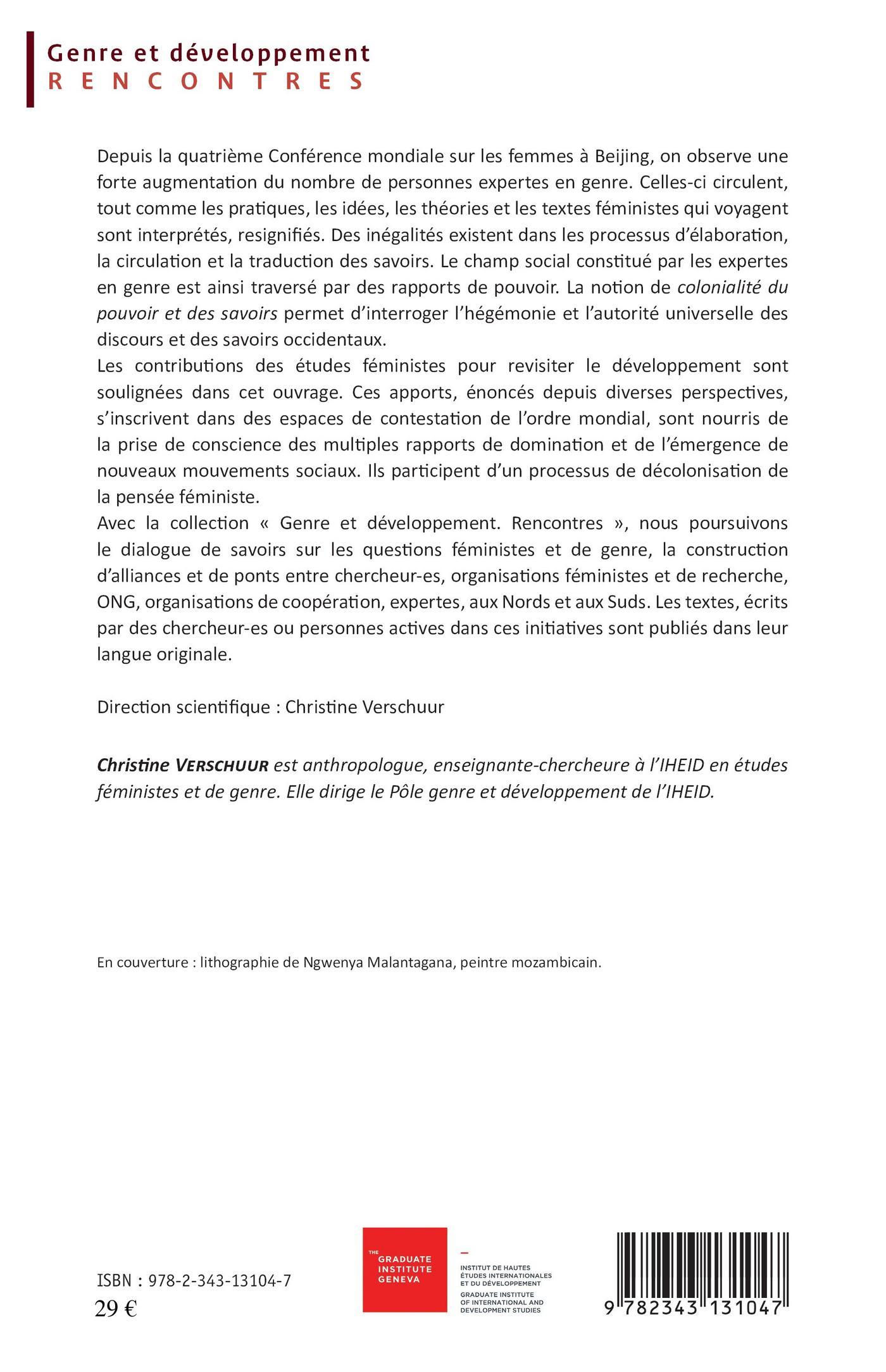 Depuis la quatrième Conférence mondiale sur les femmes à Beijing, on observe une forte augmentation du nombre de personnes expertes en genre. Celles-ci circulent, tout comme les pratiques, les idées, les théories et les textes féministes qui voyagent sont interprétés, resignifiés. Des inégalités existent dans les processus d’élaboration, la circulation et la traduction des savoirs. Le champ social constitué par les expertes en genre est ainsi traversé par des rapports de pouvoir. La notion de colonialité du pouvoir et des savoirs permet d’interroger l’hégémonie et l’autorité universelle des discours et des savoirs occidentaux. Les contributions des études féministes pour revisiter le développement sont soulignées dans cet ouvrage. Ces apports, énoncés depuis diverses perspectives, s’inscrivent dans des espaces de contestation de l’ordre mondial, sont nourris de la prise de conscience des multiples rapports de domination et de l’émergence de nouveaux mouvements sociaux. Ils participent d’un processus de décolonisation de la pensée féministe. Avec la collection « Genre et développement. Rencontres », nous poursuivons le dialogue de savoirs sur les questions féministes et de genre, la construction d’alliances et de ponts entre chercheur-es, organisations féministes et de recherche, ONG, organisations de coopération, expertes, aux Nords et aux Suds. Les textes, écrits par des chercheur-es ou personnes actives dans ces initiatives sont publiés dans leur langue originale.
