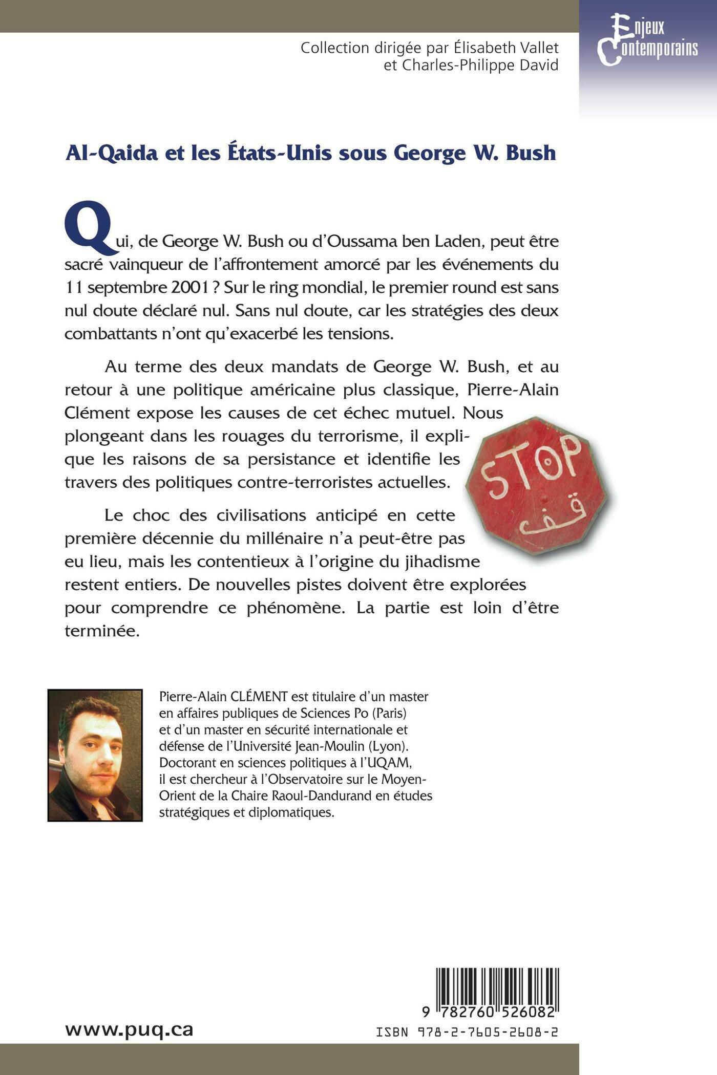 Qui, de George W. Bush ou d’Oussama ben Laden, peut être sacré vainqueur de l’affrontement amorcé par les événements du 11 septembre 2001 ? Sur le ring mondial, le premier round est sans nul doute déclaré nul. Sans nul doute, car les stratégies des deux combattants n’ont qu’exacerbé les tensions. _x000D__x000D_Au terme des deux mandats de George W. Bush, et au retour à une politique américaine plus classique, Pierre-Alain Clément expose les causes de cet échec mutuel. Nous plongeant dans les rouages du terrorisme, il explique les raisons de sa persistance et identifie les travers des politiques contre-terroristes actuelles. _x000D__x000D_Le choc des civilisations anticipé en cette première décennie du millénaire n’a peut-être pas eu lieu, mais les contentieux à l’origine du jihadisme restent entiers. De nouvelles pistes doivent être explorées pour comprendre ce phénomène. La partie est loin d’être terminée._x000D_