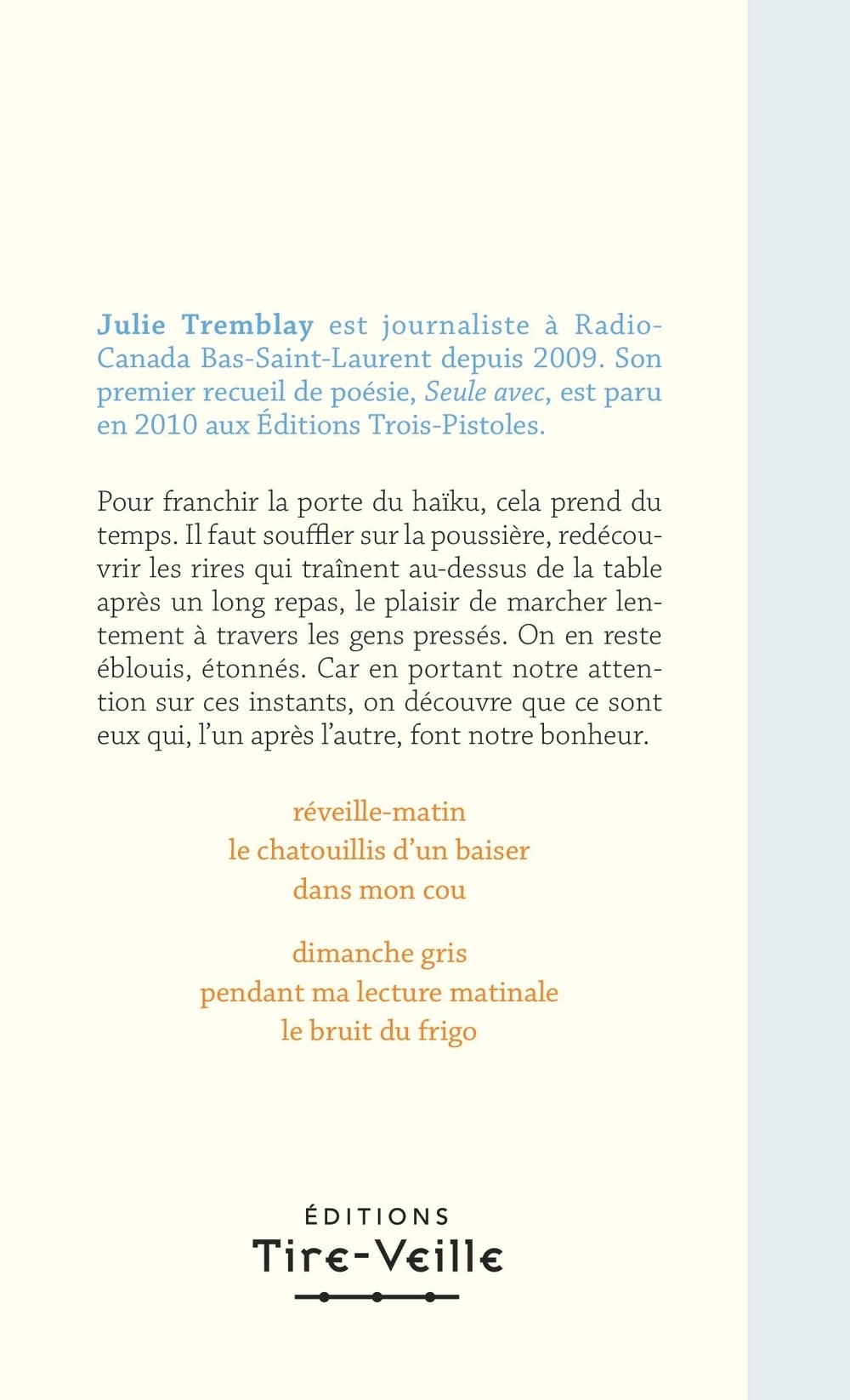 réveille-matin / le chatouillis d’un baiser / dans mon cou