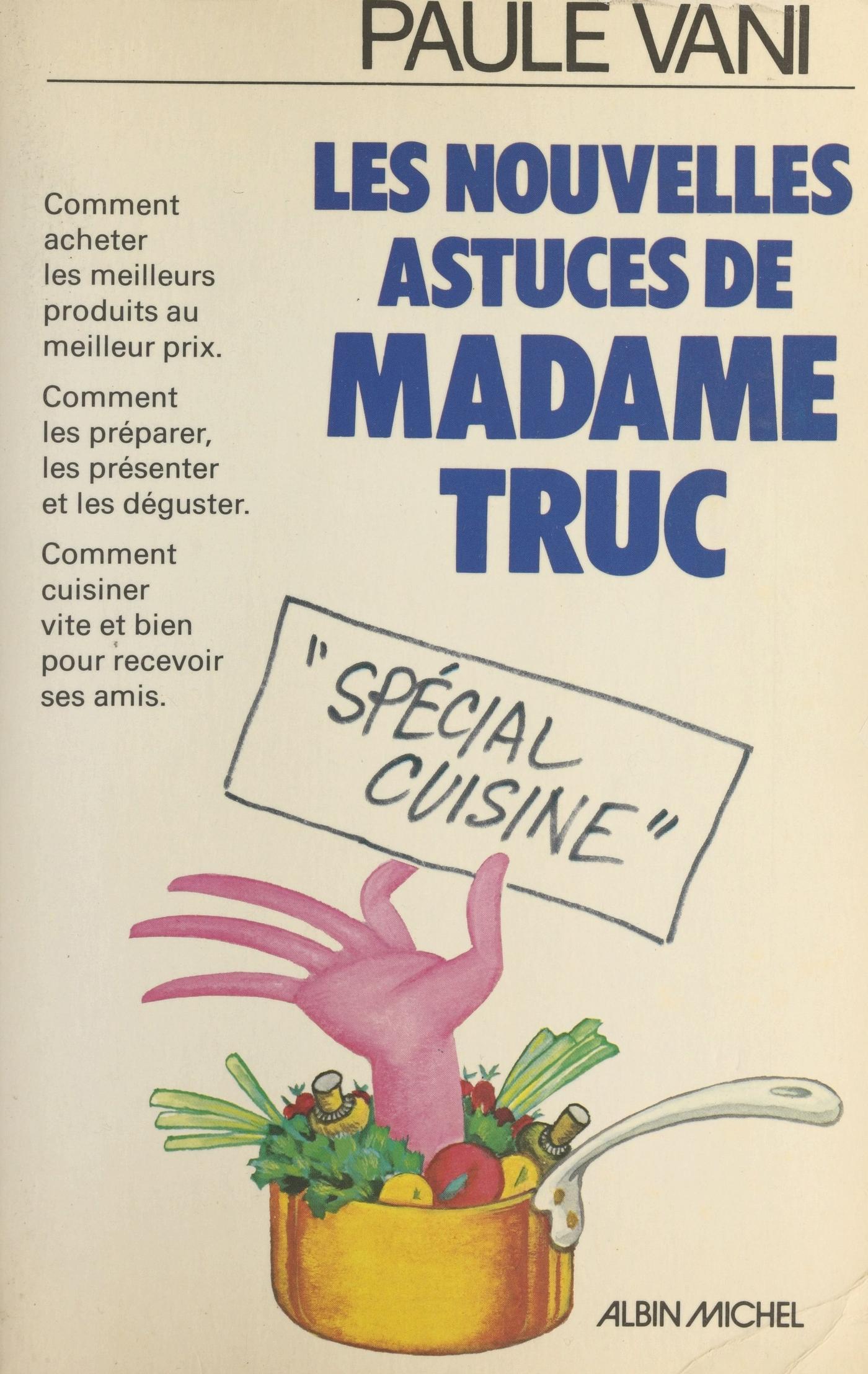 Madame Truc, vous la connaissez ! Vous la connaissez bien : elle vous parle tous les jours à 10 h 10 sur Radio Monte-Carlo ; elle vous rend visite tous les dimanches matins à 11 h dans « Traque-Trucs » sur Antenne II. Et puis vous êtes nombreuses (... nombreux !) à vous êtes servi avec enthousiasme des précieux conseils pratiques qu'elle donne dans son livre qui a connu un grand succès : Les Astuces de Madame Truc.Madame Truc a continué à emmagasiner pour vous des « astuces », des « idées », des « tours de main », et dans ce nouvel ouvrage elle vous offre tous ceux qui concernent cet aspect essentiel de la vie : la cuisine.Mais s'il n'est ici question que de cuisine, attention ! il ne s'agit pas de recettes, ni de recommandations vagues, ni de généralités ! Grâce à ce livre, les femmes vont avoir sous la main un véritable recueil de renseignements, conseils, astuces, trucs spécifiques, leur permettant de tout savoir sur les légumes, viandes, poissons, fruits..., depuis le moment où elles font leur marché jusqu'à celui où elles confectionnent un plat et le servent à table. Par exemple :Pourquoi dans votre panier ne devez-vous jamais mettre ensemble des artichauts et des œufs ?Savez-vous que 100 g de chocolat apportent autant de calories que 9 œufs ou 3 tranches de jambon ?Pourquoi en cours de cuisson ne faut-il jamais piquer un bifteck avec une fourchette ?Comment sans colorant donner une bonne couleur à un potage « fait maison » ?Savez-vous que pour conserver le moelleux des petits fours une pomme lavée et essuyée vous sera d'un grand secours ?...En outre, quelques conseils de savoir-vivre et un bref historique amusant de chaque élément de base de la cuisine viennent étayer, égayer, ce livre qui a bien sûr les mêmes qualités de présentation et d'utilisation pratique que Les Astuces de Madame Truc.Alors, à côté de vos solennels livres de recettes, vous aurez sûrement envie de placer ce judicieux, astucieux et indispensable complément « Spécial Cuisine » que vous apporte Madame Truc, alias Paule Vani.