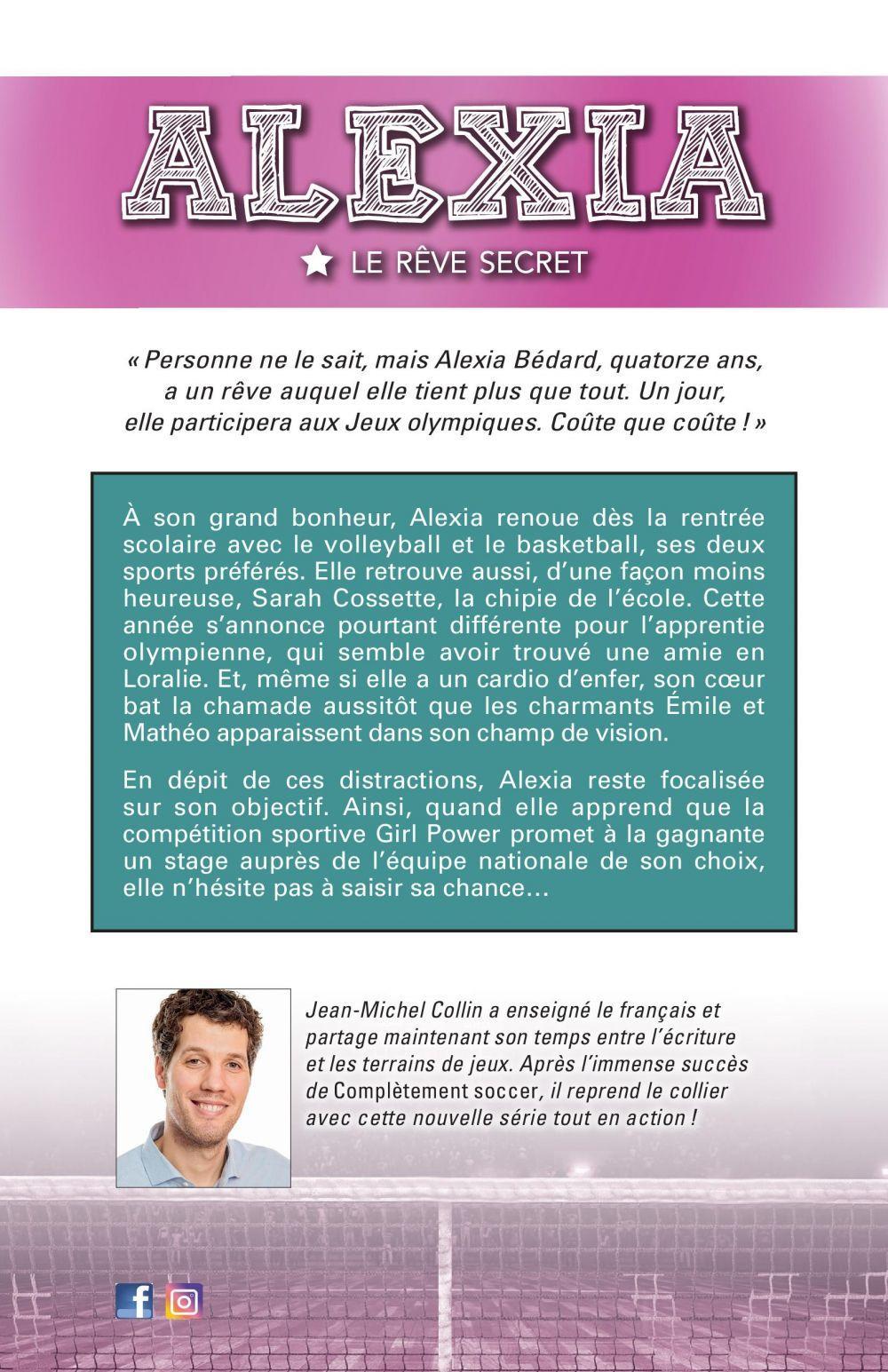 « Personne ne le sait, mais Alexia Bédard, quatorze ans, a un rêve auquel elle tient plus que tout. Un jour, elle participera aux Jeux olympiques. Coûte que coûte ! »À son grand bonheur, Alexia renoue dès la rentrée scolaire avec le volleyball et le basketball, ses deux sports préférés. Elle retrouve aussi, d’une façon moins heureuse, Sarah Cossette, la chipie de l’école. Cette année s’annonce pourtant différente pour l’apprentie olympienne, qui semble avoir trouvé une amie en Loralie. Et, même si elle a un cardio d’enfer, son coeur bat la chamade aussitôt que les charmants Émile et Mathéo apparaissent dans son champ de vision.En dépit de ces distractions, Alexia reste focalisée sur son objectif. Ainsi, quand elle apprend que la compétition sportive Girl Power promet à la gagnante un stage auprès de l’équipe nationale de son choix, elle n’hésite pas à saisir sa chance…Jean-Michel Collin a enseigné le français et partage maintenant son temps entre l’écriture et les terrains de jeux. Après l’immense succès de Complètement soccer, il reprend le collier avec cette nouvelle série tout en action !