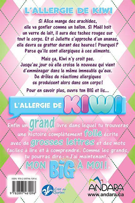 Si Alice mange des arachides, elle va gonfler comme un ballon. Si Maël boit un verre de lait, il aura des taches rouges sur tout le corps. Et si Juliette s'approche d'un ananas, elle devra se gratter durant des heures! Pourquoi? Parce qu'ils sont allergiques à ces aliments.Mais ça, Kiwi n'y croit pas.Jusqu'au jour où elle croise le nouveau qui vient d'emménager dans le même immeuble qu'eux. De drôles de réactions allergiques se produisent alors dans son corps!Pour en savoir plus, ouvre ton BIG et lis... L'allergie de Kiwi