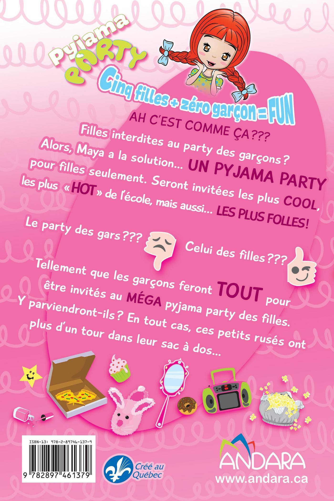 AH C’EST COMME ÇA ! Filles interdites au party des garçons ? Alors, Maya a la solution… UN PYJAMA PARTY pour filles seulement. Seront invitées les plus COOL, les plus «HOT» de l’école, mais aussi… LES PLUS FOLLES ! Le party des gars ??? (NUL) Celui des filles ??? (COOL) Tellement que les garçons feront TOUT pour être invités au MÉGA pyjama party des filles. Y parviendront-ils ? En tout cas, ces petits rusés ont plus d’un tour dans leur sac à dos…