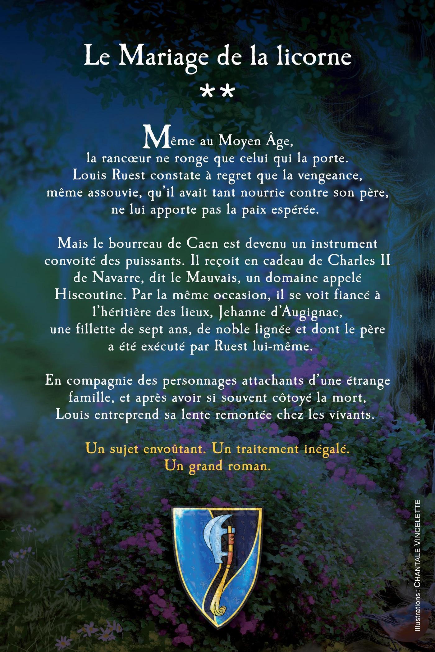 Dans ce second tome d'une série, Le Maître des peines, qui en comptera trois, Louis Ruest, toujours exécuteur de la cité de Caen, découvre que sa vengeance contre son père, enfin assouvie, ne lui apporte pas la paix qu’il avait tant espérée. Au contraire, elle le laisse avec une impression de vide et une existence qui, selon lui, n’a plus aucun sens.Il est toutefois loin de se douter que son élan destructeur est sur le point d’avoir des répercussions qui se feront sentir jusqu’aux trônes de deux rois. Sa réputation a fait de lui un personnage diabolique digne des fables et il est devenu un instrument convoité des puissants. Ainsi, Louis est-il invité à la cour du roi de Navarre et promis à un brillant avenir pour un roturier, ce qui aura pour conséquence d’éveiller jalousies et intrigues de cour.Pourtant, celui qu’on appelle « monstre » demeure suffisamment humain pour susciter aussi l’amour, depuis celui d’une veuve de haut rang jusqu’à celui d’une servante. Mais c’est l’amour pur d’une enfant, Jehanne, qui est destiné à lui donner un nouveau jardin et à changer sa vie.Et c'est ainsi qu'en compagnie des personnages attachants d’une nouvelle famille, et après avoir tant côtoyé la mort, Louis entreprend sa lente remontée parmi les vivants.