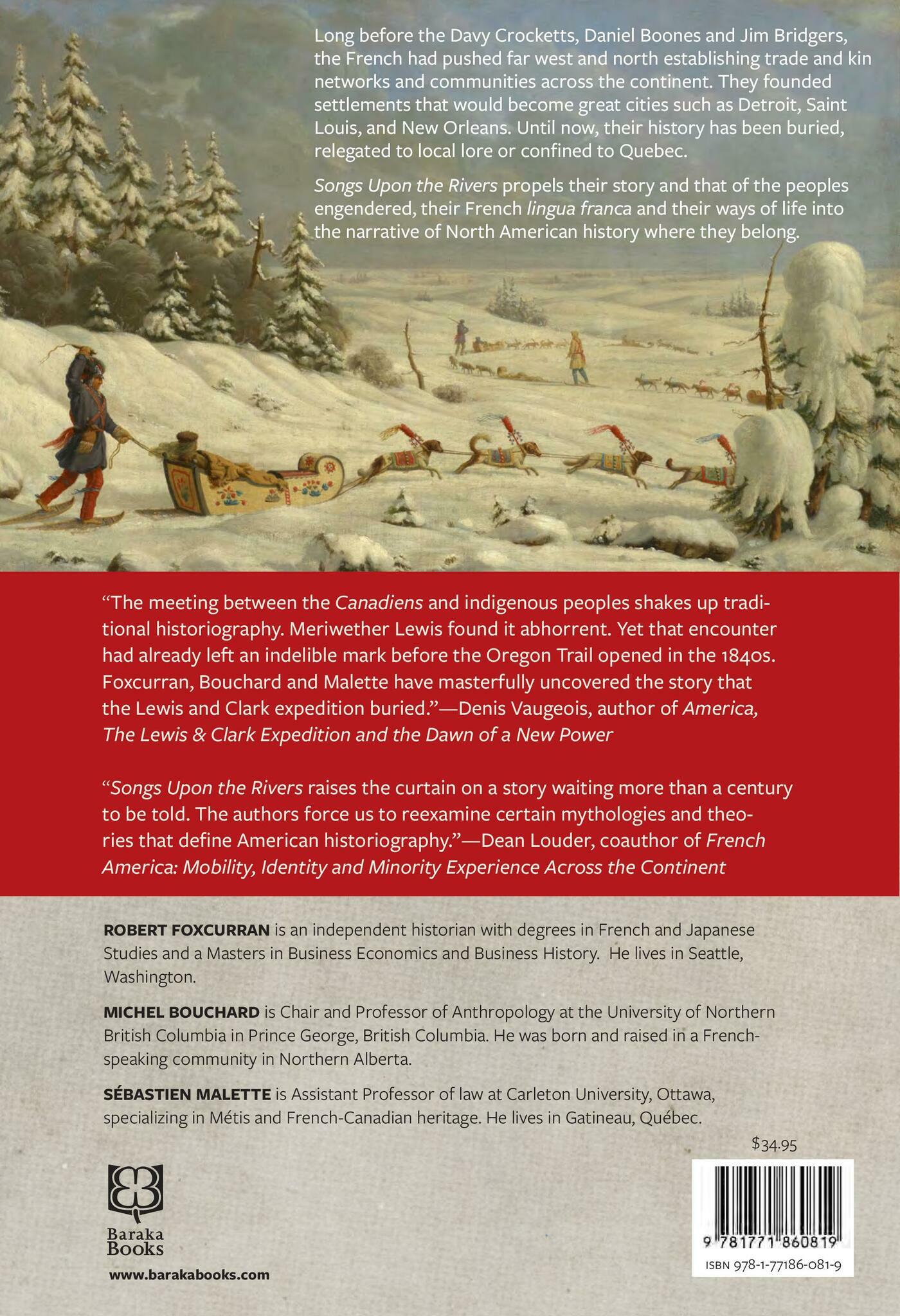 Long before the Davie Crockets, the Daniel Boones and Jim Bridgers, the French had pushed far west and north establishing trade and kin networks across the continent. They founded settlements that would become great cities such as Detroit, Saint Louis, and New Orleans, but their history has been largely buried or relegated to local lore or confined to Quebec.Foxcurran, Bouchard, and Malette scrutinize primary sources and uncover the alliances, organic links and métissage, or mixing, between early French settlers and voyageurs and the indigenous nations. It began with the founding of New France by Samuel de Champlain in the early 1600s and continued well into the 19th century long after France was no longer a force in North America.The authors have combined keen and accessible story telling with vintage maps, forgotten documents (such as the little known writings of Alexis de Tocqueville), and old photos or paintings. What they have discovered and now recount will propel the story of the peoples engendered—and still thriving—, their French lingua franca, and their ways of life back into the heart of the narrative of North American history where they belong.Alexandre Guerrette dit Dumont. Born 1815 at La baye verte (Green Bay), Wisconsin, Dumont was one of the earliest settlers in Oregon's Umpqua region.Alexandre Guerrette dit Dumont. Born 1815 at La Baye verte (Green Bay), Wisconsin, Dumont was one of the earliest settlers in Oregon’s Umpqua region.Songs Upon the Rivers also challenges historical orthodoxies. The French-speaking Canadien and Métis, who descended from the French and indigenous nations, developed a hybrid culture invigorated by their close kinship ties with the indigenous peoples across the continent. Yet they kept their French songs and language, which effectively made French the lingua franca of the American and Canadian West well into the 19th century.