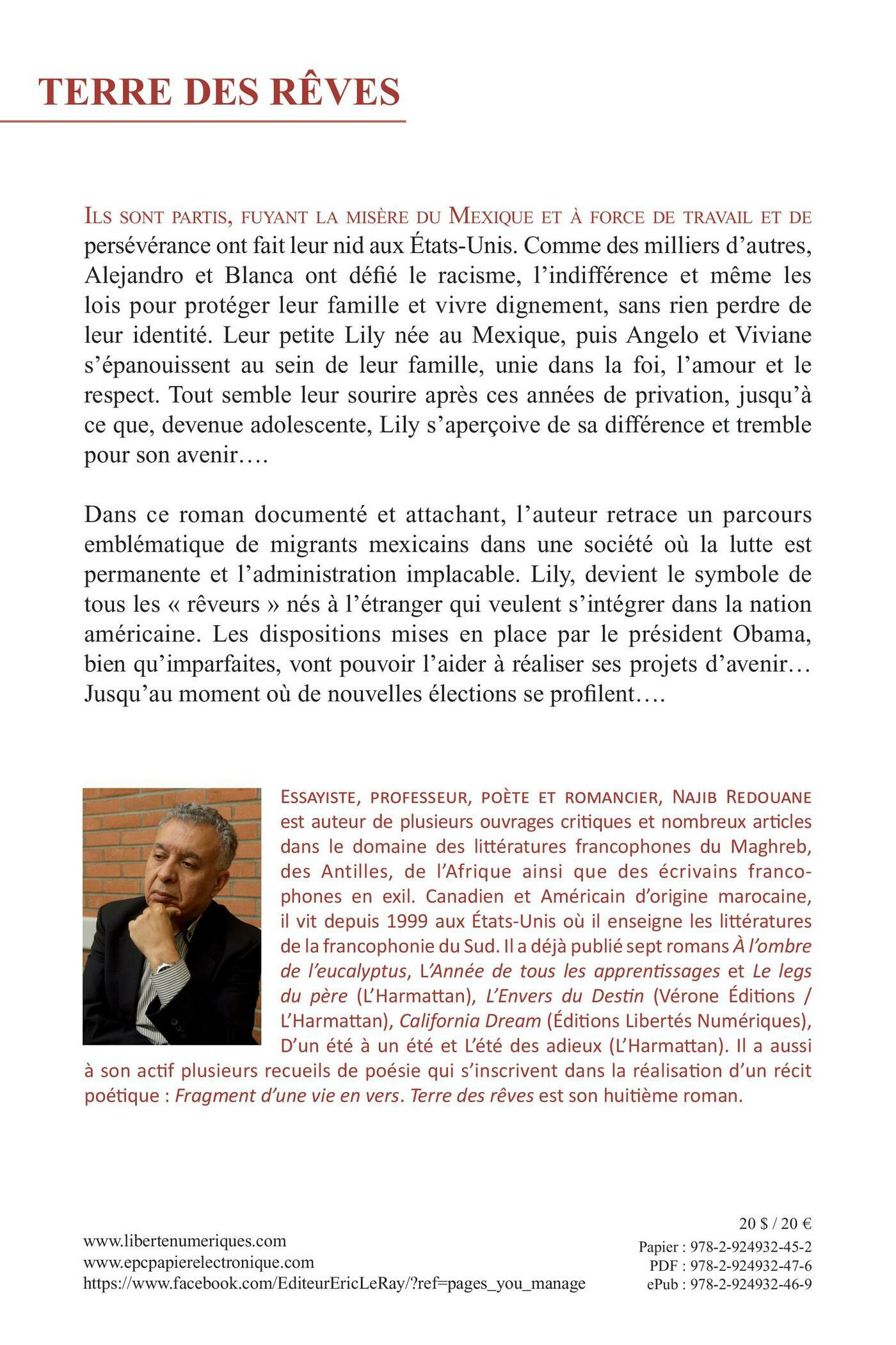 ILS SONT PARTIS, FUYANT LA MISÈRE DU MEXIQUE ET À FORCE DE TRAVAIL ET DEpersévérance ont fait leur nid aux États-Unis. Comme des milliers d’autres,Alejandro et Blanca ont défi é le racisme, l’indifférence et même leslois pour protéger leur famille et vivre dignement, sans rien perdre deleur identité. Leur petite Lily née au Mexique, puis Angelo et Vivianes’épanouissent au sein de leur famille, unie dans la foi, l’amour et lerespect. Tout semble leur sourire après ces années de privation, jusqu’àce que, devenue adolescente, Lily s’aperçoive de sa différence et tremblepour son avenir….Dans ce roman documenté et attachant, l’auteur retrace un parcoursemblé matique de migrants mexicains dans une société où la lutte estpermanente et l’administration implacable. Lily, devient le symbole detous les « rêveurs » nés à l’étranger qui veulent s’intégrer dans la nationaméricaine. Les dispositions mises en place par le président Obama,bien qu’imparfaites, vont pouvoir l’aider à réaliser ses projets d’avenir…Jusqu’au moment où de nouvelles élections se profi lent….