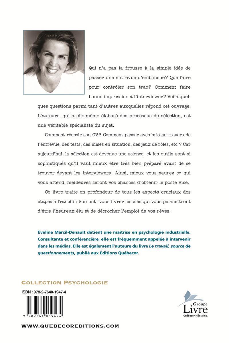 Qui n'a pas la frousse à la simple idée de passer une entrevue d'embauche? Que faire pour contrôler son trac? Comment faire bonne impression à l'interviewer? Voilà quelques questions parmi tant d'autres auxquelles répond cet ouvrage. L'auteure, qui a elle-même élaboré des processus de sélection, est une véritable spécialiste du sujet.