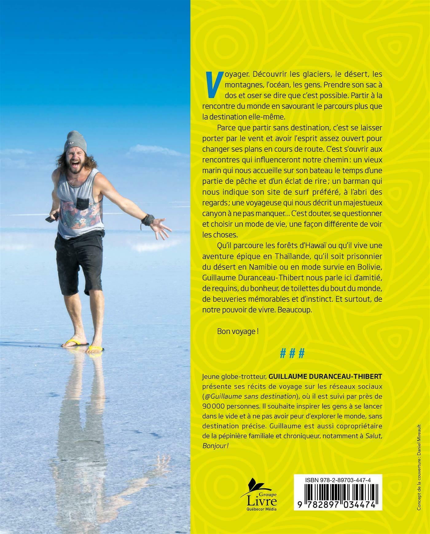 . Parce que partir sans destination, c'est se laisser porter par le vent et avoir l'esprit assez ouvert pour changer ses plans en cours de route. C'est s'ouvrir aux rencontres qui influenceront notre chemin: un vieux marin qui nous accueille sur son bateau le temps d'une partie de pêche et d'un éclat de rire; un barman qui nous indique son site de surf préféré, à l'abri des regards; une voyageuse qui nous décrit un majestueux canyon à ne pas manquer… C'est douter, se questionner et choisir un mode de vie, une façon différente de voir les choses.