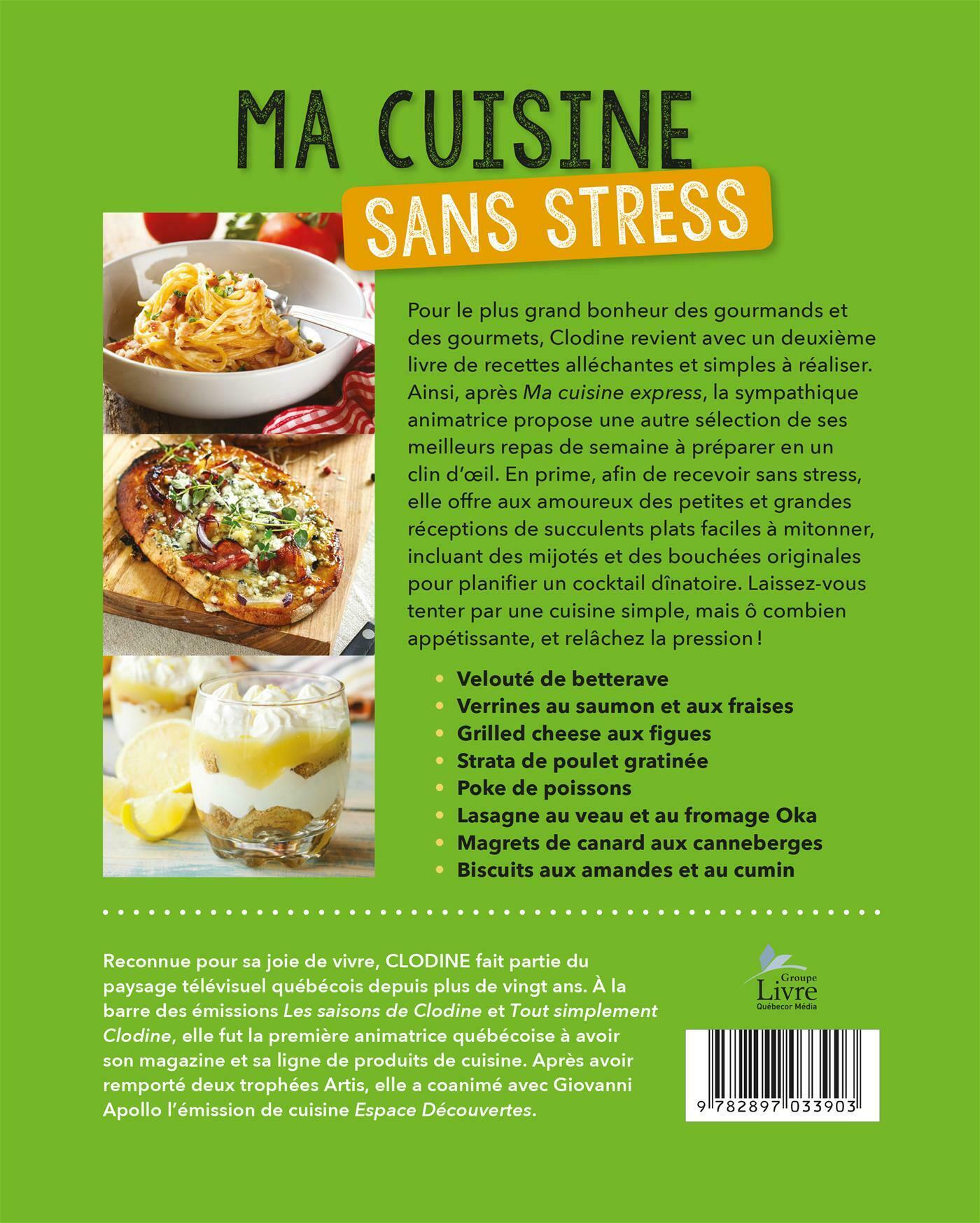 Pour le plus grand bonheur des gourmands et des gourmets, Clodine revient avec un deuxième livre de recettes alléchantes et simples à réaliser. Ainsi, après Ma cuisine express, la sympathique animatrice propose une autre sélection de ses meilleurs repas de semaine à préparer en un clin d'œil. En prime, afin de recevoir sans stress, elle offre aux amoureux des petites et grandes réceptions de succulents plats faciles à mitonner, incluant des mijotés et des bouchées originales pour planifier un cocktail dînatoire. Laissez-vous tenter par une cuisine simple, mais ô combien appétissante, et relâchez la pression!