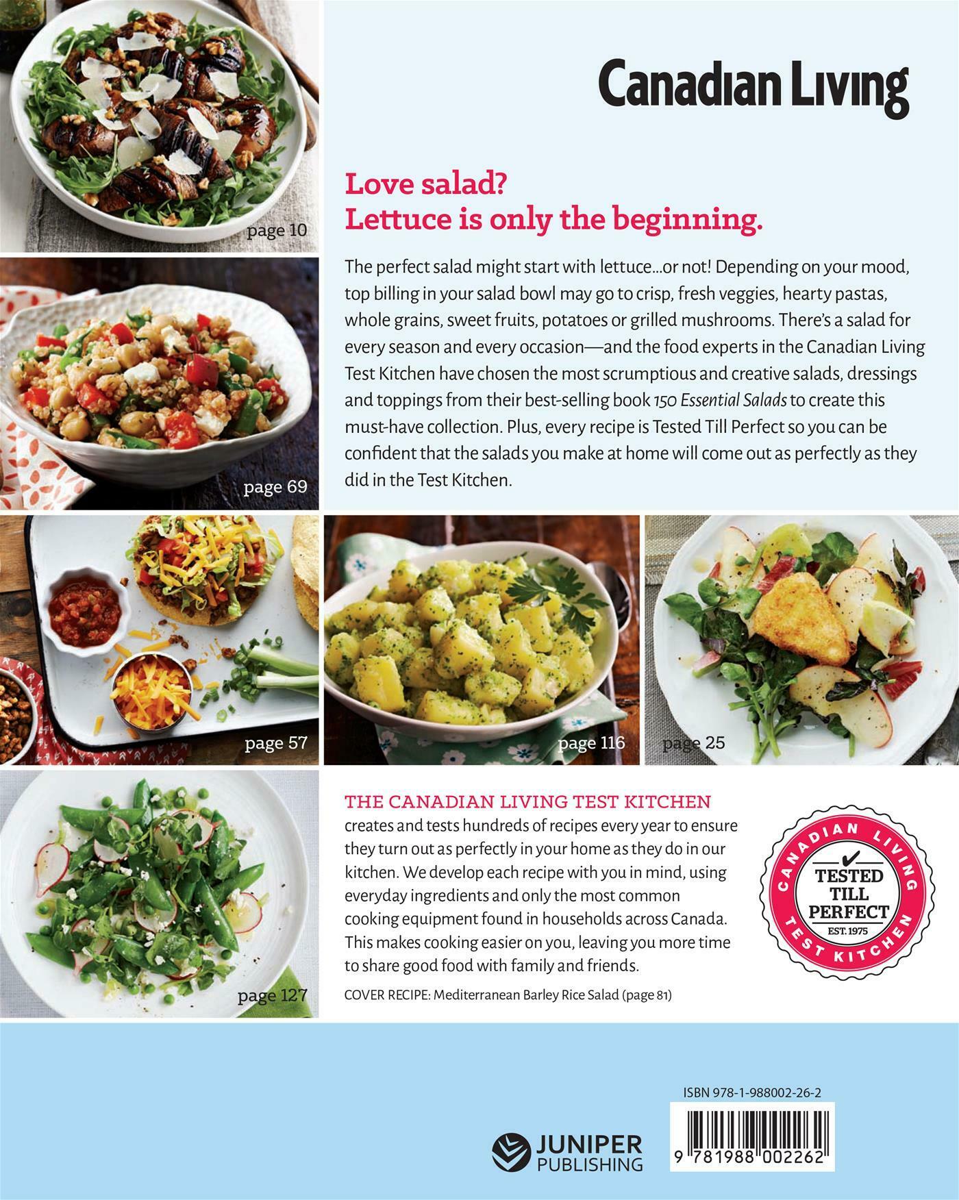 .The perfect salad might start with lettuce…or not! Depending on your mood, top billing in your salad bowl may go to crisp, fresh veggies, hearty pastas, whole grains, sweet fruits, potatoes or grilled mushrooms. There's a salad for every season and every occasion—and the food experts in the Canadian Living Test Kitchen have chosen the most scrumptious and creative salads, dressings and toppings from their best-selling book 150 Essential Salads to create this must-have collection. Plus, every recipe is Tested Till Perfect so you can be confident that the salads you make at home will come out as perfectly as they did in the Test Kitchen.