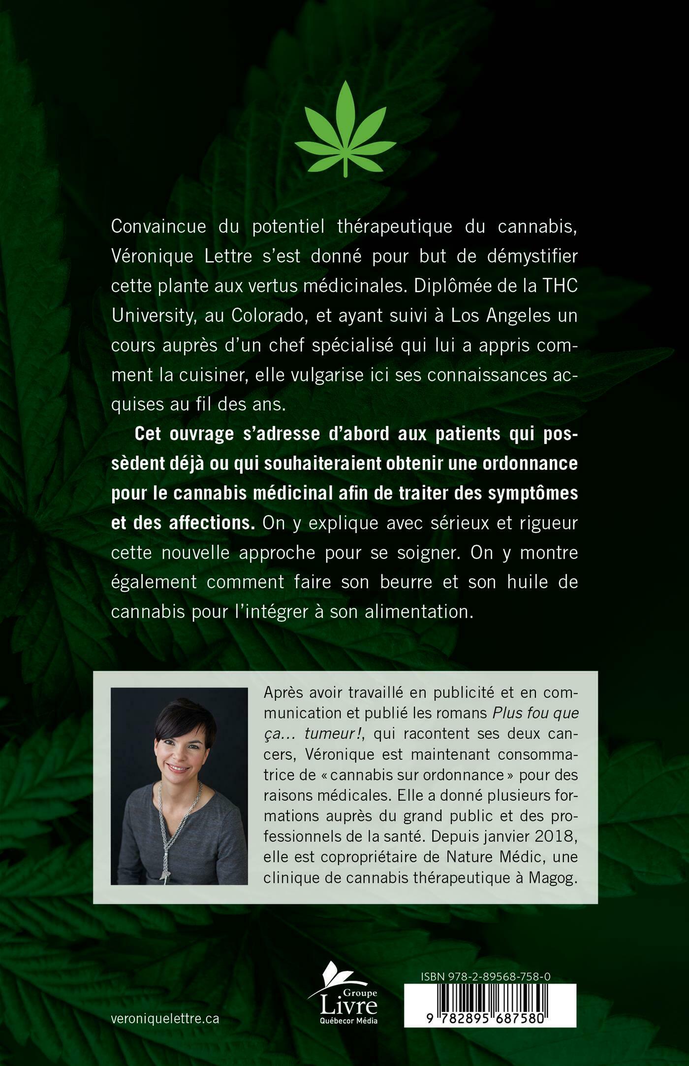 Convaincue du potentiel thérapeutique du cannabis, Véronique Lettre s'est donné pour but de démystifier cette plante aux vertus médicinales. Diplômée de la THC University, au Colorado, et ayant suivi à Los Angeles un cours auprès d'un chef spécialisé qui lui a appris comment la cuisiner, elle vulgarise ici ses connaissances acquises au fil des ans.