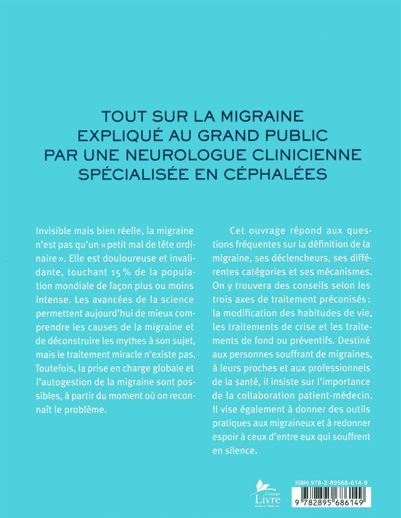 .Cet ouvrage répond aux questions fréquentes sur la définition de la migraine, ses déclencheurs, ses différentes catégories et ses mécanismes. On y trouvera des conseils selon les trois axes de traitement préconisés : la modification des habitudes de vie, les traitements de crise et les traitements de fond ou préventifs. Destiné aux personnes souffrant de migraines, à leurs proches et aux professionnels de la santé, il insiste sur l'importance de la collaboration patient-médecin. Il vise également à donner des outils pratiques aux migraineux et à redonner espoir à ceux d'entre eux qui souffrent en silence.