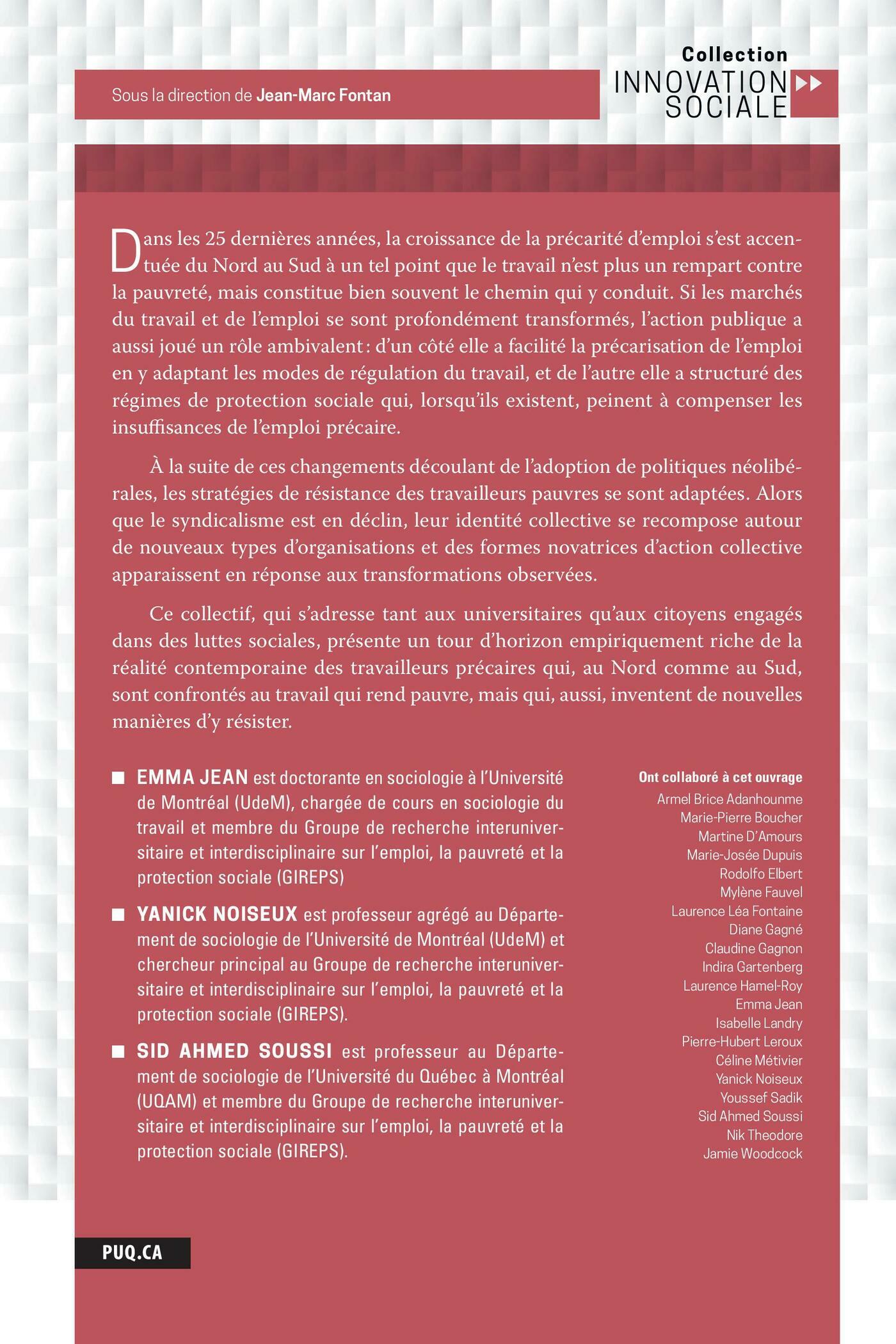 Ce collectif, qui s’adresse tant aux universitaires qu’aux citoyens engagés dans des luttes sociales, présente un tour d’horizon empiriquement riche de la réalité contemporaine des travailleurs précaires qui, au Nord comme au Sud, sont confrontés au travail qui rend pauvre, mais qui, aussi, inventent de nouvelles manières d’y résister.