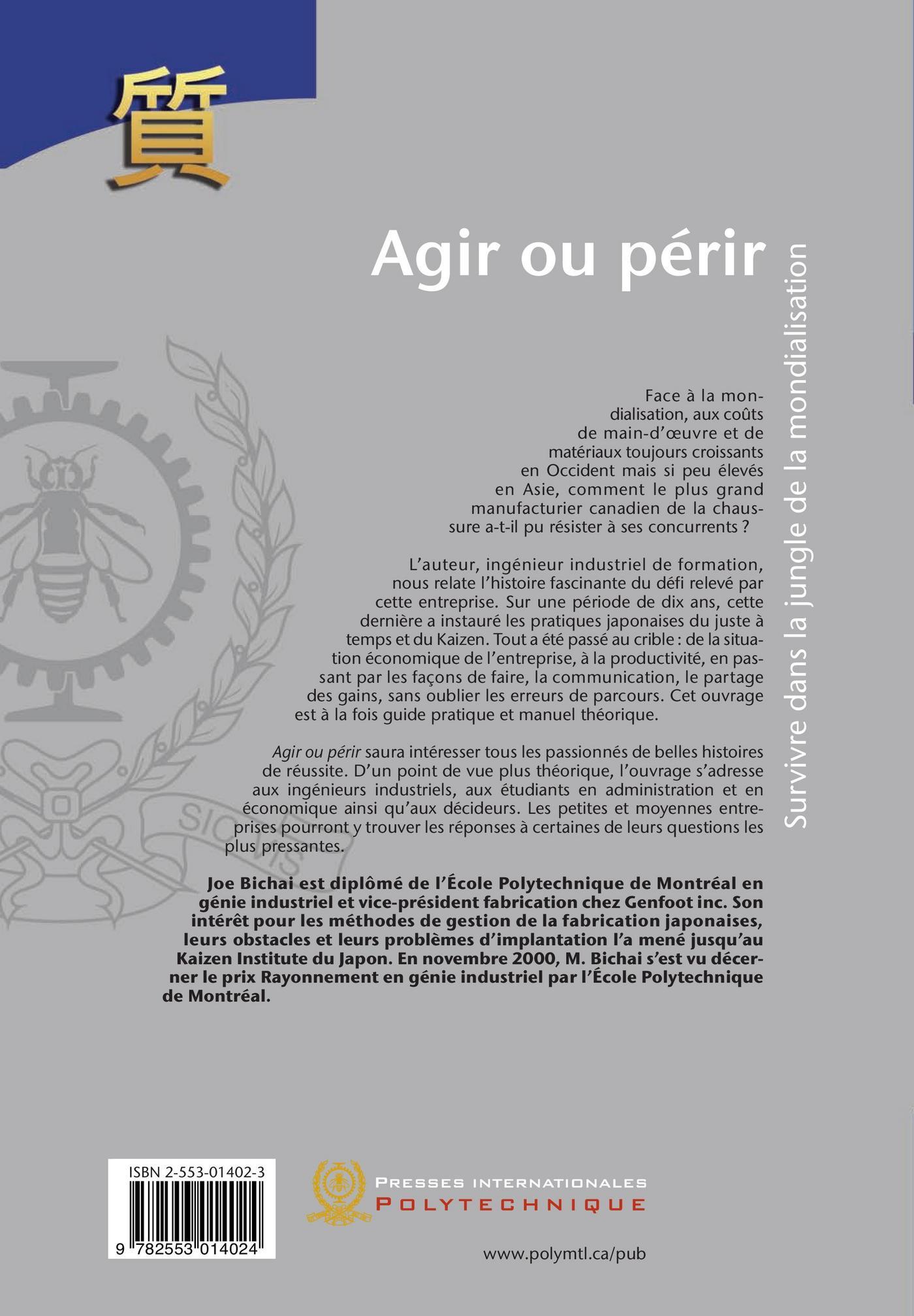 L’auteur, ingénieur industriel de formation, nous relate l’histoire fascinante du défi relevé par son entreprise de manufacture de chaussures face à la mondialisation. Sur une période de dix ans, cette dernière a instauré les pratiques japonaises du juste à temps et du Kaizen. Tout a été passé au crible : de la situation économique de l’entreprise, à la productivité, en passant par les façons de faire, la communication, le partage des gains, sans oublier les erreurs de parcours. L’ouvrage s’adresse aux ingénieurs industriels, aux étudiants en administration et en économique ainsi qu’aux décideurs. Le livre, qui se lit comme un roman, captivera aussi les non-spécialistes que les histoires de réussite intéressent.