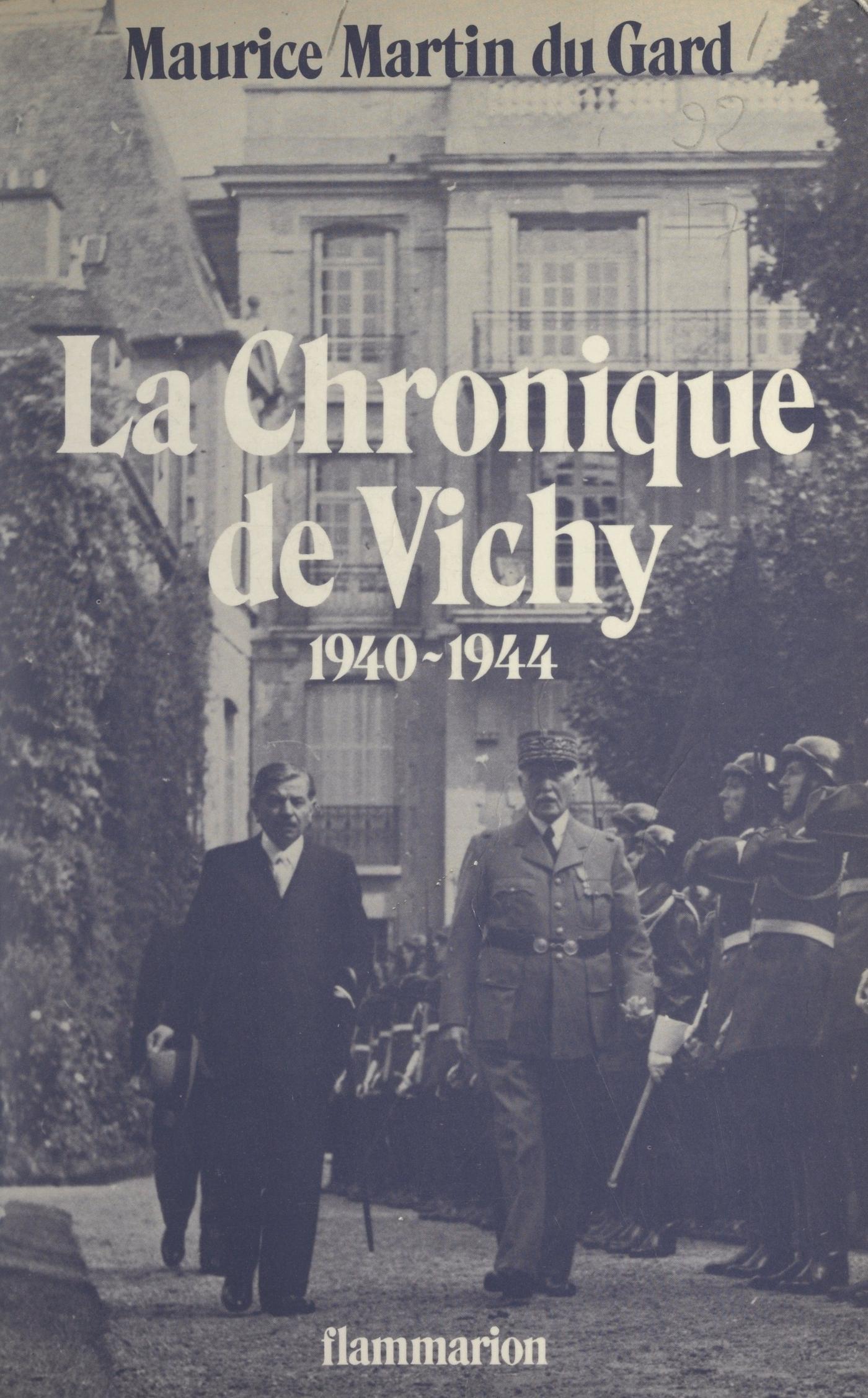 De 1940 à 1944, Maurice Martin du Gard fut l’observateur indiscret et bien informé des événements qui eurent lieu à Vichy. L’originalité de son témoignage est qu’il ne nous renseigne pas seulement sur le monde politique vichyssois mais qu’en passant dans les coulisses il parvient à nous rendre l’atmosphère du régime de Vichy. Avec lui, nous nous entretenons avec le maréchal Pétain à l’Hôtel du Parc, nous accompagnons Laval dans sa propriété de Châteldon, nous recueillons les témoignages de leurs ministres. Nous déjeunons aussi avec Sacha Guitry, nous retrouvons Jean Cocteau au Palais Royal, et nous terminons la soirée chez Jean Giraudoux qui nous livre les sentiments que la situation lui inspire. Au fil des pages, une galerie de portraits se compose, de Pétain à Darlan, de Pucheu à Henriot. La plupart des acteurs de cette période, Maurice Martin du Gard les connaît de longue date ; en deux mots, il nous retrace leur évolution passée souvent peu connue, évoque un souvenir inédit qui prend alors toute sa saveur. Dans cette chronique au jour le jour, l’auteur intervient peu et il faut souvent lire entre les lignes pour voir où vont ses sympathies véritables...