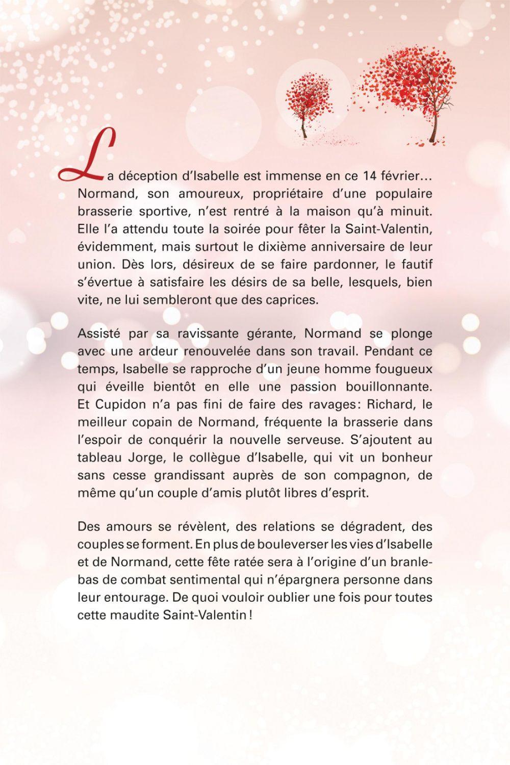 La déception d'Isabelle est immense en ce 14 février… Normand, son amoureux, propriétaire d'une populaire brasserie sportive, n'est rentré à la maison qu'à minuit. Elle l'a attendu toute la soirée pour fêter la Saint-Valentin, évidemment, mais surtout le dixième anniversaire de leur union. Dès lors, désireux de se faire pardonner, le fautif s'évertue à satisfaire les désirs de sa belle, lesquels, bien vite, ne lui sembleront que des caprices.Assisté par sa ravissante gérante, Normand se plonge avec une ardeur renouvelée dans son travail. Pendant ce temps, Isabelle se rapproche d'un jeune homme fougueux qui éveille bientôt en elle une passion bouillonnante. Et Cupidon n'a pas fini de faire des ravages : Richard, le meilleur copain de Normand, fréquente la brasserie dans l'espoir de conquérir la nouvelle serveuse. S'ajoutent au tableau Jorge, le collègue d'Isabelle, qui vit un bonheur sans cesse grandissant auprès de son compagnon, de même qu'un couple d'amis plutôt libres d'esprit.Des amours se révèlent, des relations se dégradent, des couples se forment. En plus de bouleverser les vies d'Isabelle et de Normand, cette fête ratée sera à l'origine d'un branle-bas de combat sentimental qui n'épargnera personne dans leur entourage. De quoi vouloir oublier une fois pour toutes cette maudite Saint-Valentin !