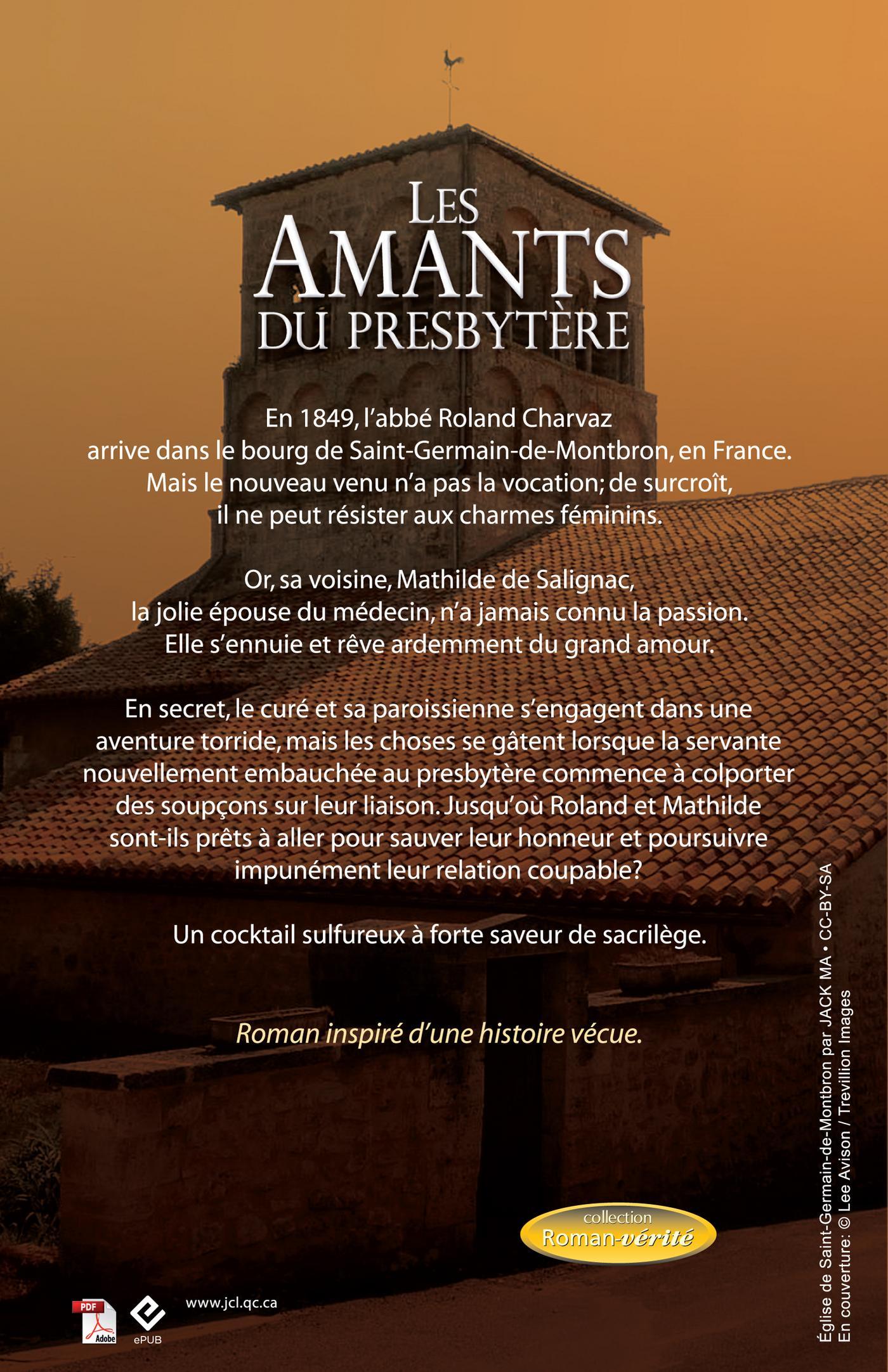 Saint-Germain-de-Montbron, été 1849. Pour le plus grand bonheur des paroissiens de cette bucolique commune rurale située en Charente, un nouveau curé se présente enfin au presbytère. Or, le jeune Roland Charvaz n’a manifestement pas la vocation; il favorise de loin les conquêtes féminines au détriment de la salvation des âmes. Pour sa part, Mathilde, la jolie épouse du docteur de Salignac et mère d’un petit garçon, n’a jamais connu la passion amoureuse, du moins, jusqu'au jour où le nouveau religieux s'installe tout près de chez elle.Dès leur première rencontre, c'est le coup de foudre et les deux amants se lancent dans une aventure torride, à l’insu de tous. Leur secret honteux ne sera pas éventé jusqu'à ce que la nouvelle domestique du curé découvre leur liaison illicite.Scandalisée, Annie Meunier menace de tout révéler au mari trompé et à l’évêché. Elle ne sait dans quel piège elle vient de mettre les pieds, car Roland et Mathilde sont prêts à tout pour sauver leur honneur… et leur relation. Lorsque la vieille femme décède dans des circonstances mystérieuses, une enquête est ouverte par les autorités. Sûrs de leur crime parfait, Roland et Mathilde se pensent à l’abri de tout soupçon, mais ils ne savent pas qu'Annie a déjà fait des révélations troublantes à son entourage…Enquête et procès suivront à cause de cette femme, dont la curiosité et la langue trop bien pendue ont causé la perte.Inspiré d'une histoire vraie, ce nouveau roman de Marie-Bernadette Dupuy allie des ambiances finement dessinées à une tension constante qui explose lors d'un procès fortement médiatisé à travers toute la France.
