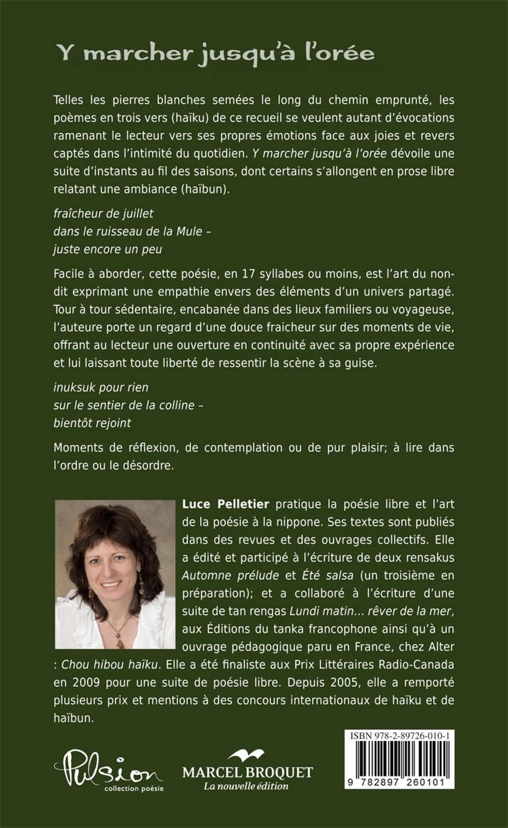 Guillaume Apollinaire, Charles Baudelaire, Françoise Belu, Jovette Bernier, Monique Bernier, Diane Boivin, Lise Chevrier, Patrick Coppens, Aimée Dandois, Jean de la Fontaine, Vincent Diraka, Hélène Dorion, Claude Drouin, Marie Dupuis, Claude Émery, Gustave Flaubert, Victor Hugo, Diane Landry, Gaëlle Le Clézio Claessens, Sara Marchand, Monique Pagé, Louise Paquette, Luce Pelletier, Hélène Perras, Lady Rojas Benavente, Danielle Shelton, Suzanne St-Hilaire, Miruna Tarcau, Thérèse Tousignant, Lucette Tremblay, Philippe Delerm, Jun'ichiro Tanizaki, Koichi Hirako, empereur Akihito