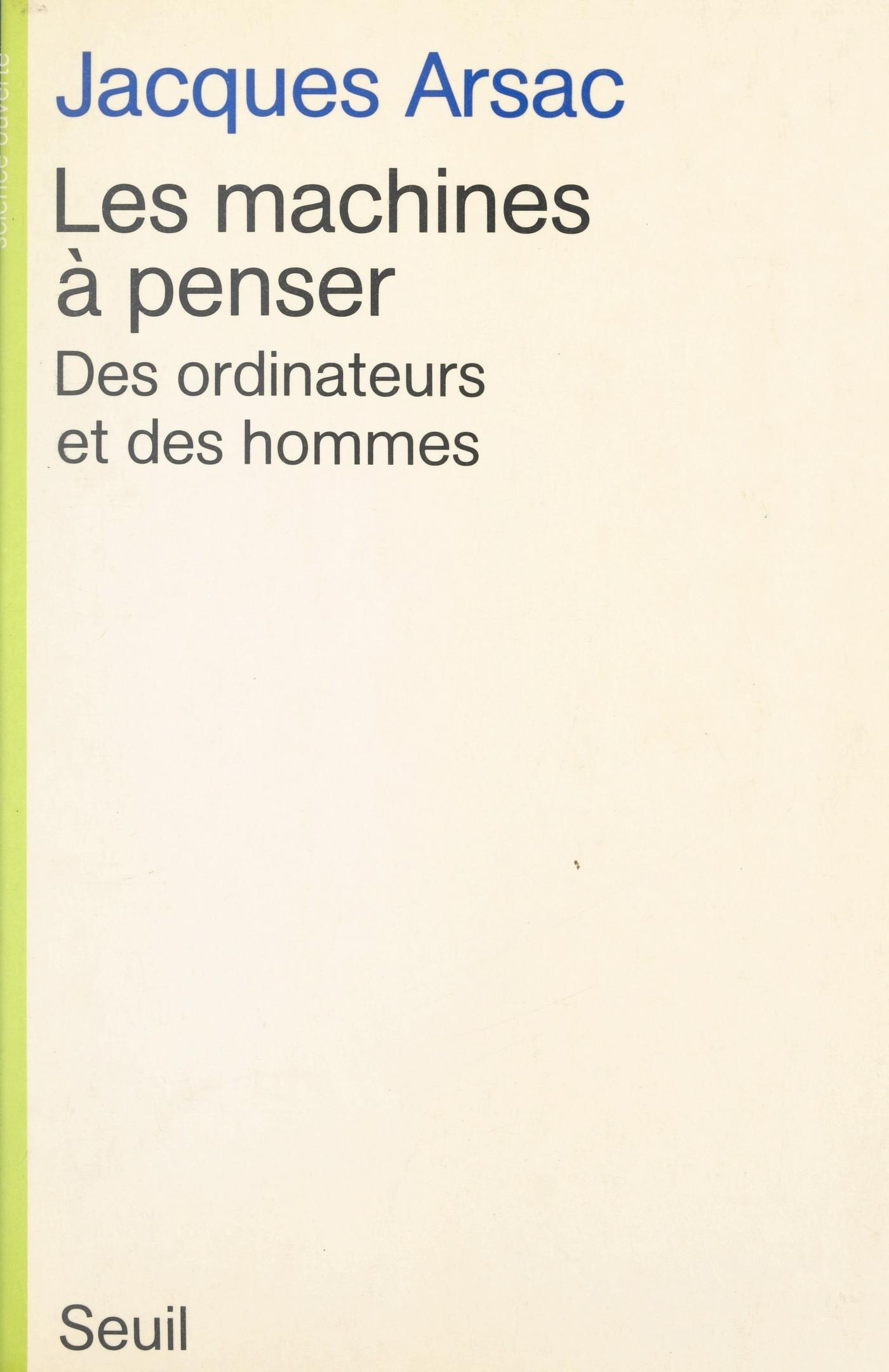 Après les machines à coudre, à laver, à écrire, utiliserons-nous bientôt des machines à penser ? Les recherches - et d'abord les discours qui se multiplient sur une « intelligence artificielle » - nous le laisseraient croire. Mais les ordinateurs peuvent-ils penser ? La compréhension du sens est-elle accessible au traitement informatique ? Et si les machines peuvent penser, comment affirmer que l'homme n'en est pas une ? Il nous faut, en tout cas, commencer à penser les machines... Jacques Arsac, l'un des maîtres de l'informatique française, dit ici son scepticisme sur les développements de l'intelligence mécanique, et son inquiétude sur les conséquences spirituelles de ces recherches.Pour étayer sa réflexion, il nous offre, tout d'abord, une présentation de l'informatique d'une lucidité inégalée, accessible sans bagage mathématique aucun. Il poursuit par une analyse critique du rôle de l'informatique à l'école, qui n'épargne guère les idées reçues des bonnes consciences modernistes. Enfin, faisant le point sur les méthodes et les outils de l'intelligence artificielle, il met en évidence le « mur du sens » - et nous invite à méditer sur la crise du sens dans notre société.