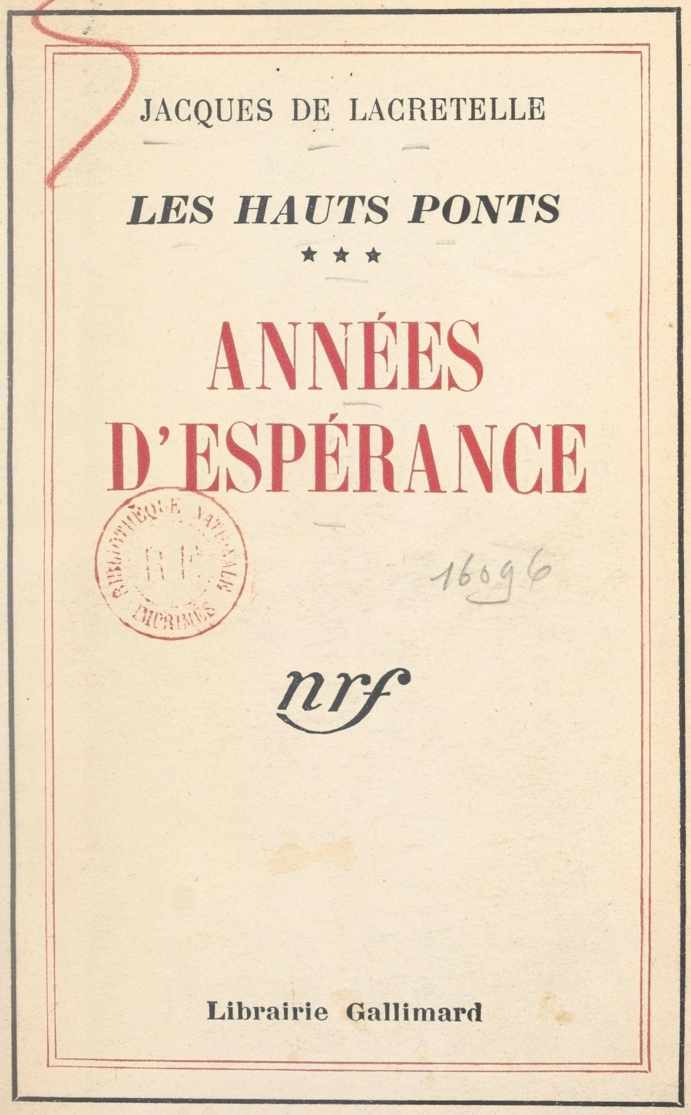 Auteur(s) : Jacques de Lacretelle