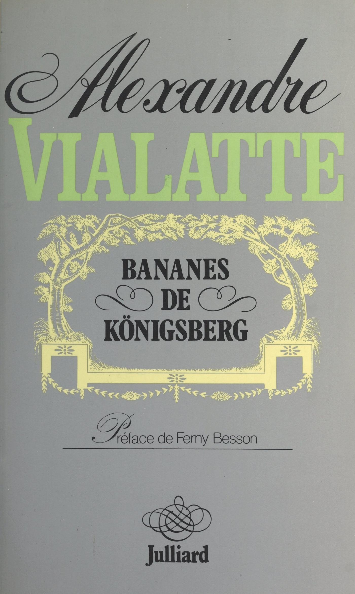 Dans ces Bananes de Königsberg, Vialatte raconte l’Allemagne telle qu’il l’a vue, entendue, ressentie, de 1922 à 1949. Arrivé en Allemagne en 1922, Vialatte s’installe à Mayence. Il respire à grandes bouffées ce folklore rhénan dont il a tant rêvé. L’écrivain retrouve l’Allemagne éternelle qu’il imaginait, romantique, teintée de piété monastique, le Rhin mystérieux et sa fascinante Lorelei. Assez vite cependant, son enthousiasme faiblit. Déçu, inquiété par l’Allemagne pro-nazie dans laquelle il voit se dessiner très clairement le péril hitlérien, Alexandre Vialatte, entre 1933 et 1939, ne fait plus que de rares et brefs séjours au-delà du Rhin. Personne ne croit à ses angoisses de Cassandre. Ce qu’il pense, redoute, paraît tellement insensé qu’on le laisse rarement s’exprimer. En janvier 1945, « correspondant de presse », il assiste aux procès des criminels de guerre de Belsen. Il les suit, à la fois fasciné et atterré par l’ampleur et l’horreur du drame, par le flegme des bourreaux qui se présentent comme des champions de l’ordre, du devoir et de l’obéissance. « Ils ouvrent sur l’âme nazie et la psychologie du crime des horizons qu’on ignorait jusqu’à ce jour. » Ces Bananes de Königsberg éclairent et nuancent l’apparence de frivolité qu’Alexandre Vialatte s’est amusé, presque toujours, à donner de lui-même. Elles affirment qu’il est aussi un écrivain profond.