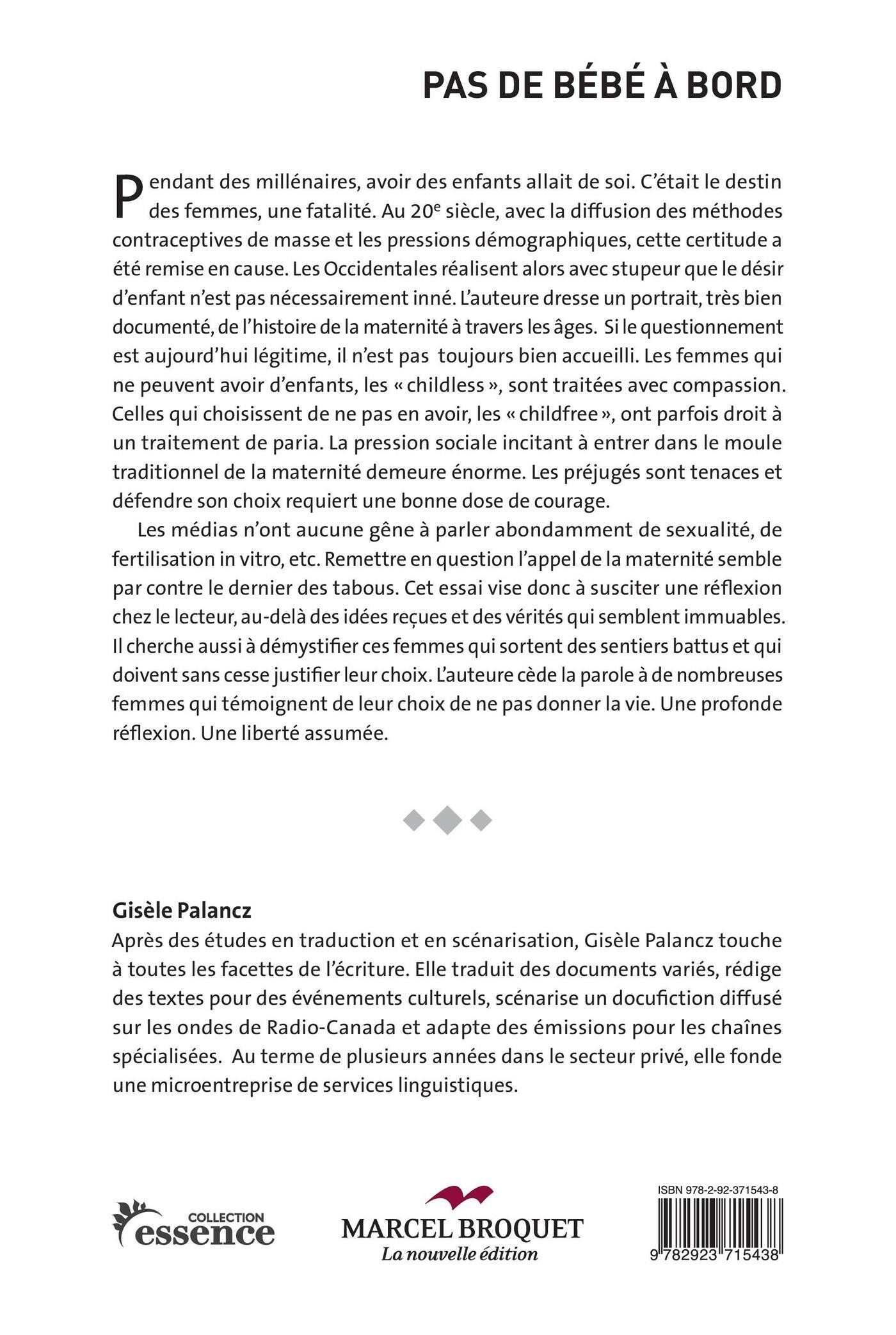 Pendant des millénaires, avoir des enfants allait de soi. C’était le destin des femmes, une fatalité. Au 20e siècle, avec la diffusion des méthodes contraceptives de masse et les pressions démographiques, cette certitude a été remise en cause. Les Occidentales réalisent alors avec stupeur que le désir d’enfant n’est pas nécessairement inné. L’auteure dresse un portrait, très bien documenté, de l’histoire de la maternité à travers les âges.Si le questionnement est aujourd’hui légitime, il n’est pas toujours bien accueilli. Les femmes qui ne peuvent avoir d’enfants, les childless, sont traitées avec compassion. Celles qui choisissent de ne pas en avoir, les childfree, ont parfois droit à un traitement de paria. La pression sociale incitant à entrer dans le moule traditionnel de la maternité demeure énorme. Les préjugés sont tenaces et défendre son choix requiert une bonne dose de courage.Les médias n’ont aucune gêne à parler abondamment de sexualité, de fertilisation in vitro, etc. Remettre en question l’appel de la maternité semble par contre le dernier des tabous. Cet essai vise donc à susciter une réflexion chez le lecteur, au-delà des idées reçues et des vérités qui semblent immuables. Il cherche aussi à démystifier ces femmes qui sortent des sentiers battus et qui doivent sans cesse justifier leur choix. L’auteure cède la parole à de nombreuses femmes qui témoignent de leur choix de ne pas donner la vie. Une profonde réflexion. Une liberté assumée.