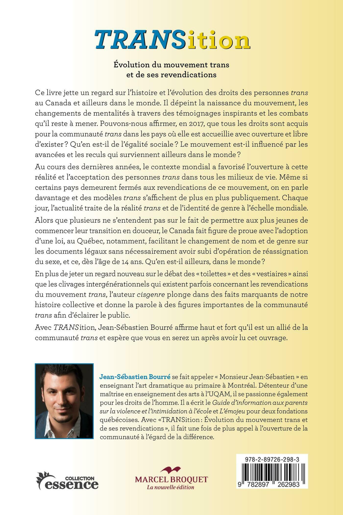 Ce livre jette un regard sur l’histoire et l’évolution des droits des personnes transau Canada et ailleurs dans le monde. Il dépeint la naissance du mouvement, leschangements de mentalités à travers des témoignages inspirants et les combatsqu’il reste à mener. Pouvons-nous affirmer, en 2017, que tous les droits sont acquispour la communauté trans dans les pays où elle est accueillie avec ouverture et libred’exister ? Qu’en est-il de l’égalité sociale ? Le mouvement est-il influencé par lesavancées et les reculs qui surviennent ailleurs dans lemonde ?Au cours des dernières années, le contexte mondial a favorisé l’ouverture à cetteréalité et l’acceptation des personnes trans dans tous les milieux de vie. Même sicertains pays demeurent fermés aux revendications de ce mouvement, on en parledavantage et des modèles trans s’affichent de plus en plus publiquement. Chaquejour, l’actualité traite de la réalité trans et de l’identité de genre à l’échellemondiale.Alors que plusieurs ne s’entendent pas sur le fait de permettre aux plus jeunes decommencer leur transition en douceur, le Canada fait figure de proue avec l’adoptiond’une loi, au Québec, notamment, facilitant le changement de nom et de genre surles documents légaux sans nécessairement avoir subi d’opération de réassignationdu sexe, et ce, dès l’âge de 14 ans. Qu’en est-il ailleurs, dans lemonde ?En plus de jeter un regard nouveau sur le débat des « toilettes » et des «vestiaires » ainsique les clivages intergénérationnels qui existent parfois concernant les revendicationsdu mouvement trans, l’auteur cisgenre plonge dans des faits marquants de notrehistoire collective et donne la parole à des figures importantes de la communautétrans afin d’éclairer le public.Avec TRANSition, Jean-Sébastien Bourré affirme haut et fort qu’il est un allié de lacommunauté trans et espère que vous en serez un après avoir lu cet ouvrage.