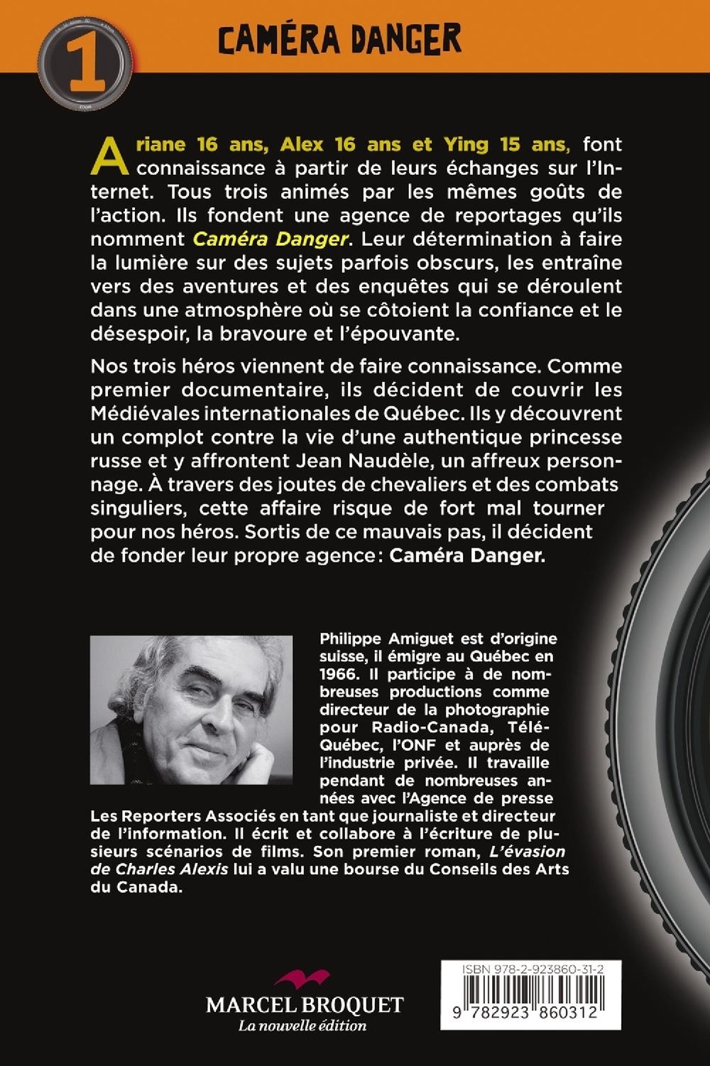 Un reportage sur les Médiévales à Québec, voilà le premier projet que s’est donné l’Équipe Caméra Danger, composé d’Ariane, Alex et Ying, trois étudiants mordus de journalisme et déterminé à communiquer les sujets par l’Art et à l’Histoire. Ils considèrent les Médiévales comme un sujet facile et qui sera vite sur l’Internet ou peut-être même à la télévision. Ils s’inscrivent donc à cet évènement haut en couleurs avec tout le matériel qu’ils arrivent à rassembler pour être à la hauteur d’une immersion totale dans le Moyen Âge !Dès le premier jour, Alex reconnaît un personnage dans le déguisement d’un preux Seigneur qui s’avère être un bandit notoire, spécialisé dans le vol de fortunes de gens bien nantis. Le reportage tourne alors à l’enquête et révèle, avec la présence d’une sorcière, qu’une véritable princesse issue de la noblesse russe et professeure de littérature médiévale en Belgique, se verra contrainte de céder sa fortune familiale, qui dort dans une banque en Suisse, si elle épouse ce bandit international, ce véritable virtuose des détournements de fortunes.À travers les fêtes de Seigneurs et de Dames, un tournoi de chevaliers, des concerts de troubadours, des bagarres et des spectacles à l’auberge, des promenades de moines suspects et de poisons mortels concoctés par une sorcière, l’équipe de Caméra Danger s’insère astucieusement dans ce jeu dangereux jusqu’au moment où l’un des leurs, Alex, disparaît subitement et qu’en même temps, il leur faut à tout prix empêcher que le mariage fatal ait lieu !
