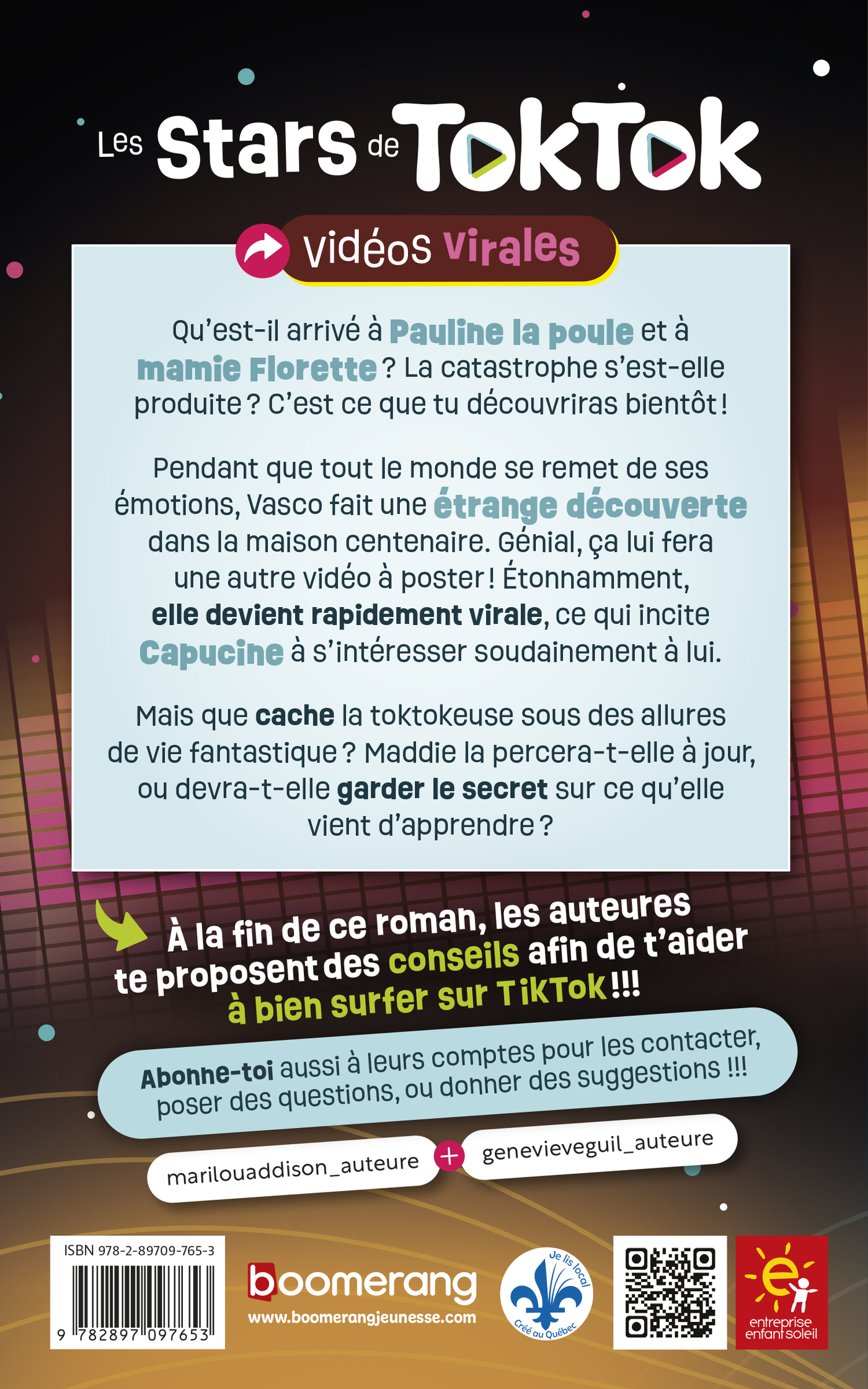 Qu’est-il arrivé à Pauline la poule et à mamie Florette ? La catastrophe s’est-elle produite ? C’est ce que tu découvriras bientôt ! Pendant que tout le monde se remet de ses émotions, Vasco fait une étrange découverte dans la maison centenaire. Génial, ça lui fera une autre vidéo à poster ! Étonnamment, elle devient rapidement virale, ce qui incite Capucine à s’intéresser soudainement à lui. Mais que cache la toktokeuse sous des allures de vie fantastique ? Maddie la percera-t-elle à jour, ou devra-t-elle garder le secret sur ce qu’elle vient d’apprendre ?