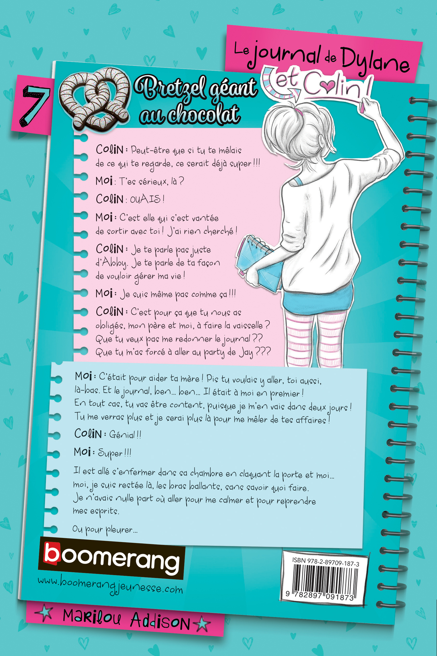 Colin : Peut-être que si tu te mêlais de ce qui te regarde, ce serait déjà super !!!Moi : T’es sérieux, là ?Colin : OUAIS !Moi : C’est elle qui s’est vantée de sortir avec toi ! J’ai rien cherché !Colin : Je te parle pas juste d’Abby. Je te parle de ta façon de vouloir gérer ma vie !Moi : Je suis même pas comme ça !!!Colin : C’est pour cette raison que tu nous as obligés, mon père et moi, à faire la vaisselle ? Que tu veux pas me redonner le journal ?? Que tu m’as obligé à aller au party de Jay ???Moi : C’était pour aider ta mère ! Pis tu voulais y aller, toi aussi, là-bas. Et le journal, ben… ben… Il était à moi en premier ! En tout cas, tu vas être content, puisque je m’en vais dans deux jours ! Tu me verras plus et je serai plus là pour me mêler de tes affaires !Colin : Génial !!Moi : Super !!! Il est allé s’enfermer dans sa chambre en claquant la porte et moi… moi, je suis restée là, les bras ballants, sans savoir quoi faire. Je n’avais pas d’endroit où aller pour me calmer et pour reprendre mes esprits. Ou pour pleurer…