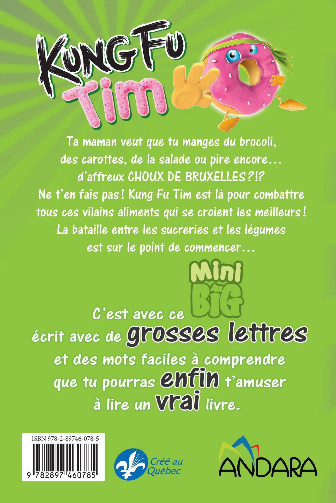 Ta maman veut que tu manges du brocoli, des carottes, de la salade ou pire encore… d’affreux CHOUX DE BRUXELLES ?!? Ne t’en fais pas ! Kung Fu Tim est là pour combattre tous ces vilains aliments qui se croient les meilleurs ! La bataille entre les sucreries et les légumes est sur le point de commencer…