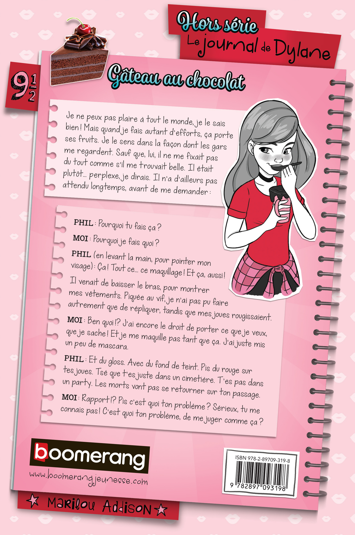 Hors série le Journal de DylaneJe ne peux pas plaire à tout le monde, je le sais bien ! Mais quand je fais autant d'efforts, ça porte ses fruits. Je le sens dans la façon dont les gars me regardent. Sauf que, lui, il ne me fixait pas du tout comme s'il me trouvait belle. Il était plutôt... perplexe, je dirais. Il n'a d'ailleurs pas attendu longtemps, avant de ne demander:PHIL: Pourquoi tu fais ça?MOI: Pourquoi je fais quoi?PHIL: (en levant la main, pour pointer mon visage): Ça! Tout ce... ce maquillage! Et ça, aussi!Il venait de baisser les bras, pour montrer mes vêtements. Piquée au vif, je n'ai pas pu faire autrement que de répliquer, tandis que mes joues rougissaient.MOI: Ben quoi!? J'ai encore le droit de porter ce que je veux, que je sache! Et je ne me maquille pas tant que ça. J'ai juste mis un peu de mascara.PHIL: Et du gloss. Avec du fond de teint. Pis du rouge sur tes joues. Tsé que t'es juste dans un cimetière. T'es pas dans un party. Les morts vont pas se retourner sur ton passage.MOI: Rapport!? Pis c'est quoi ton problème? Sérieux, tu me connais pas! C'est quoi ton problème, de me juger comme ça?