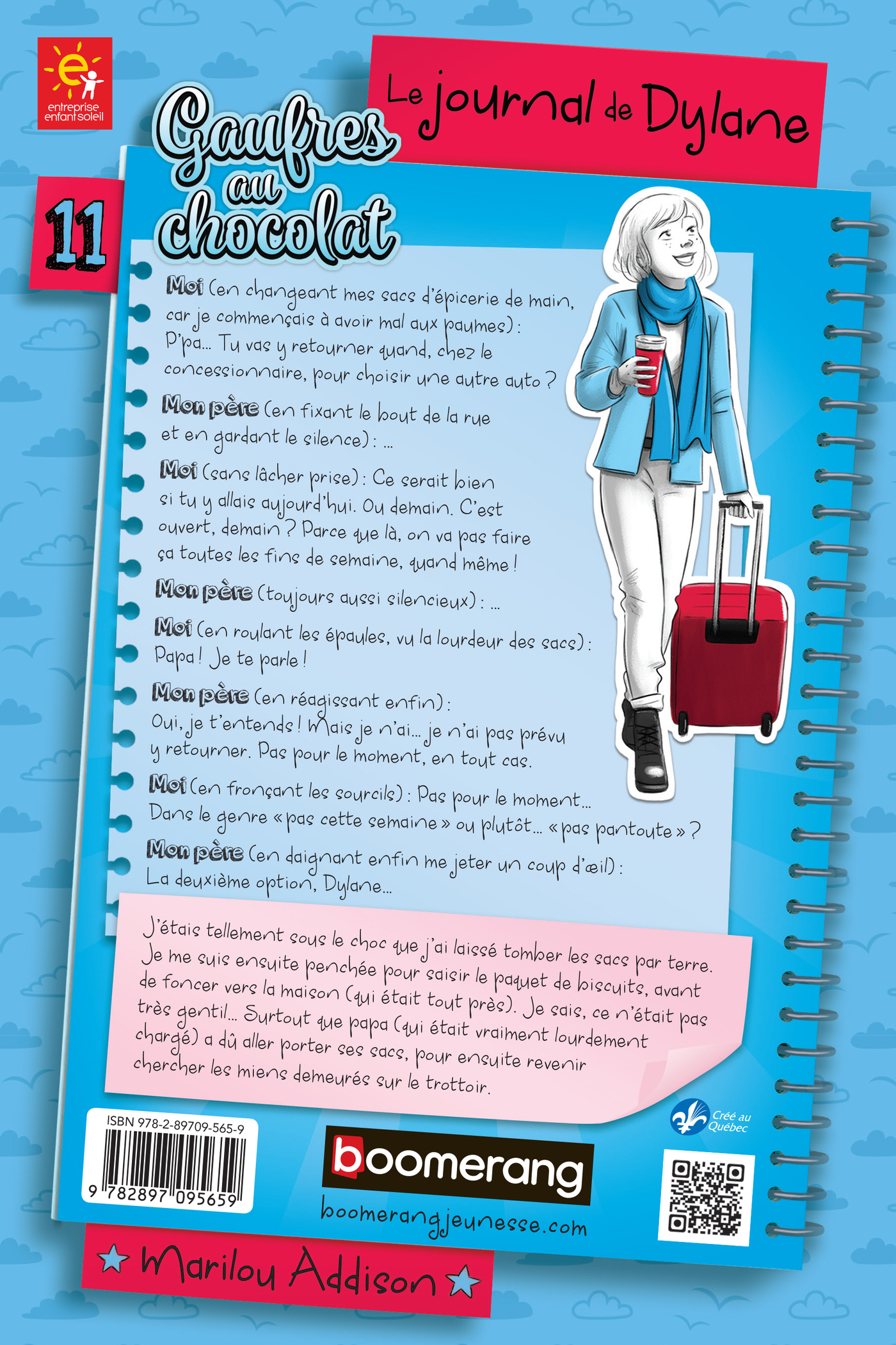 Moi (en changeant mes sacs d’épicerie de main, car je commençais à avoir mal aux paumes) : P’pa… Tu vas y retourner quand, chez le concessionnaire, pour choisir une autre auto ? Mon père (en fixant le bout de la rue et en gardant le silence) : … Moi (sans lâcher prise) : Ce serait bien si tu y allais aujourd’hui. Ou demain. C’est ouvert, demain ? Parce que là, on va pas faire ça toutes les fins de semaine, quand même ! Mon père (toujours aussi silencieux) : … Moi (en roulant les épaules, vu la lourdeur des sacs) : Papa ! Je te parle !Mon père (en réagissant enfin) : Oui, je t’entends ! Mais je n’ai… je n’ai pas prévu y retourner. Pas pour le moment, en tout cas.Moi (en fronçant les sourcils) : Pas pour le moment… Dans le genre « pas cette semaine » ou plutôt… « pas pantoute » ?Mon père (en daignant enfin me jeter un coup d’oeil) : La deuxième option, Dylane… J’étais tellement sous le choc que j’ai laissé tomber les sacs par terre. Je me suis ensuite penchée pour saisir le paquet de biscuits, avant de foncer vers la maison (qui était tout près).Je sais, ce n’était pas très gentil… Surtout que papa (qui était vraiment lourdement chargé) a dû aller porter ses sacs, pour ensuite revenir chercher les miens demeurés sur le trottoir.