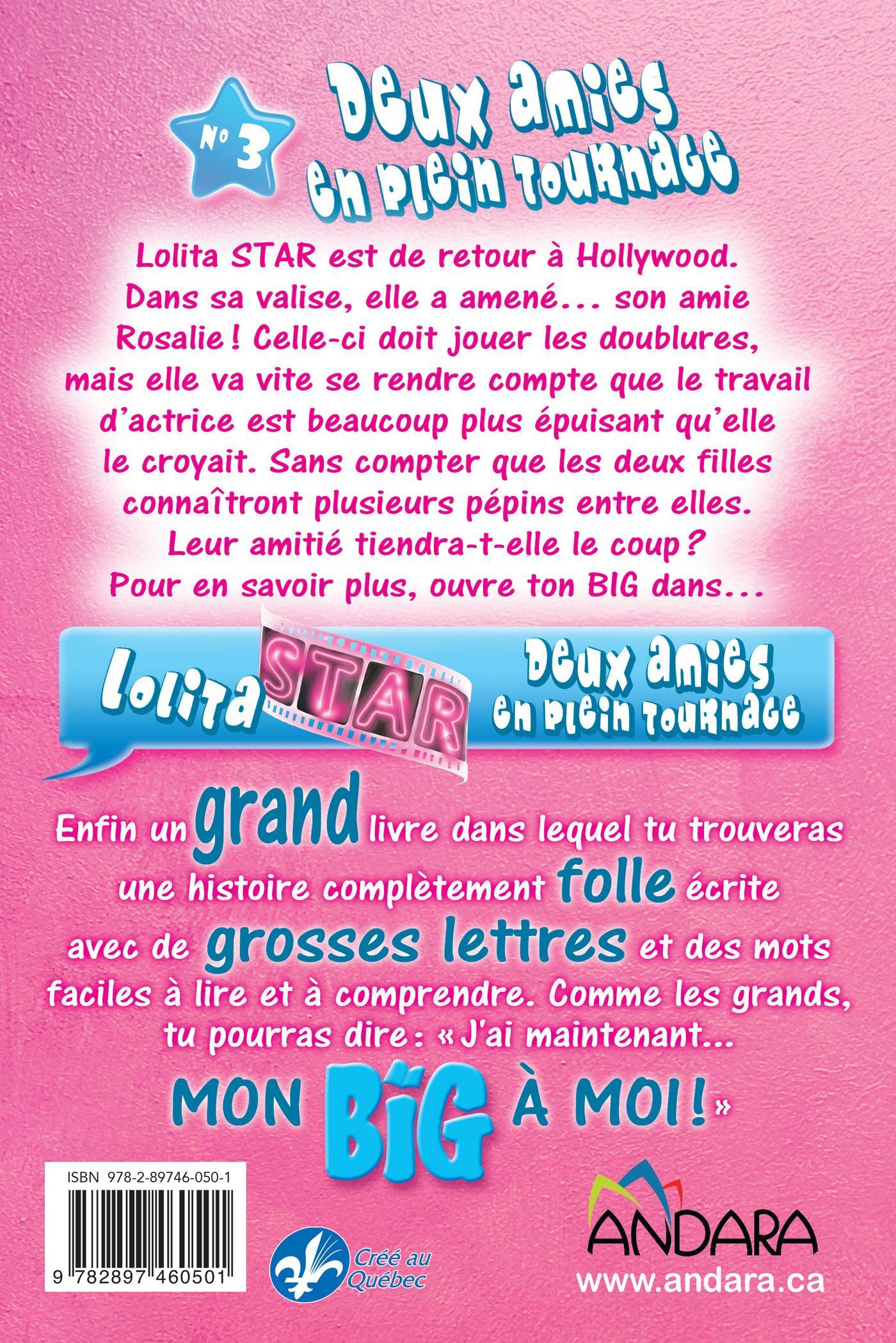 Lolita STAR est de retour à Hollywood. Dans sa valise, elle a emmené... son amie Rosalie ! Celle-ci doit jouer les doublures, mais elle va vite se rendre compte que le travail d’actrice est beaucoup plus épuisant qu’elle ne le croyait. Sans compter que plusieurs pépins surviennent entre Lolita et elle. L’amitié des deux filles est-elle en danger ?Pour en savoir plus, ouvre ton BIG dans... LOLITA STAR, deux amies en plein tournage.