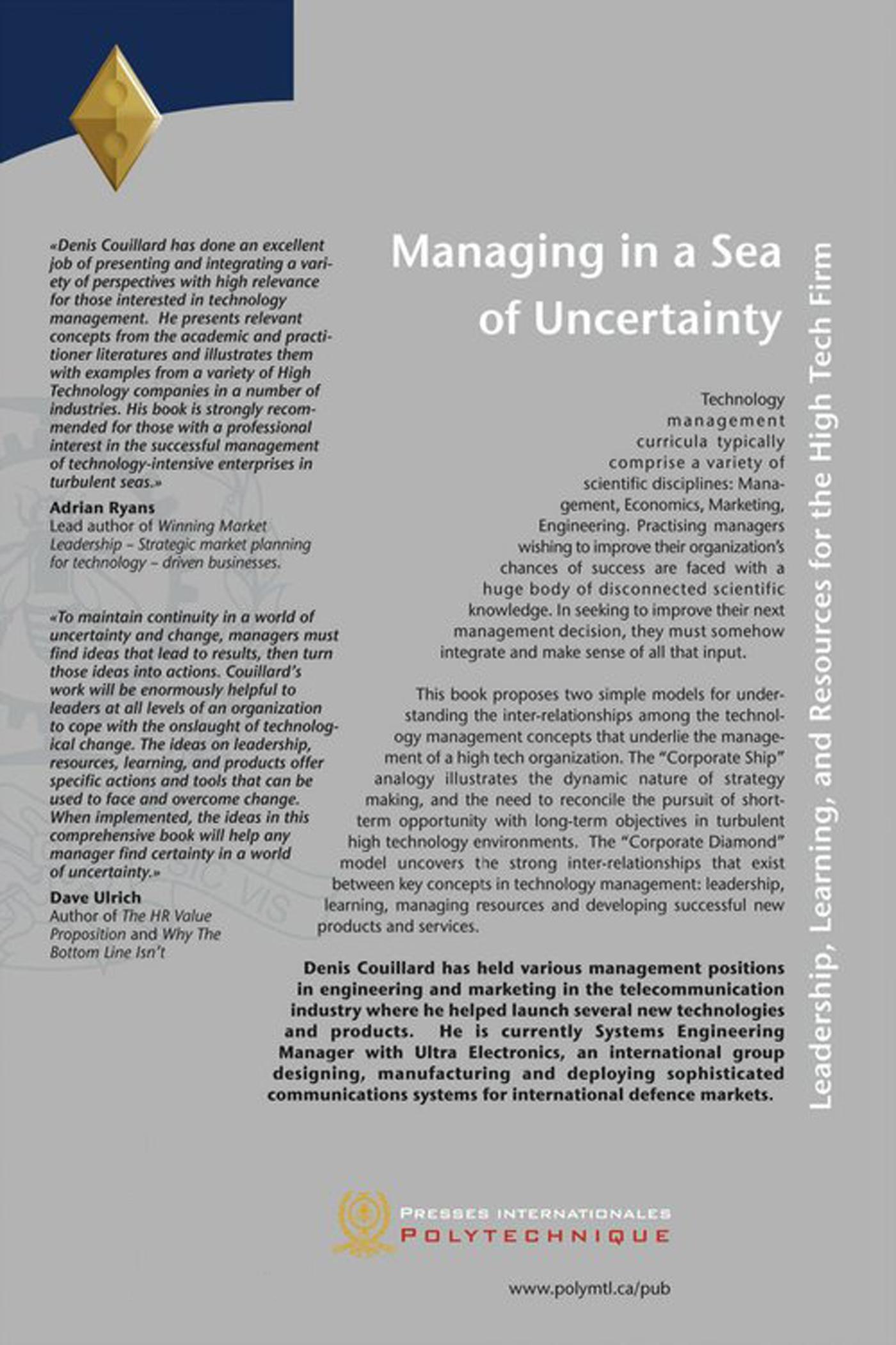 Revised version, May 2013.QUESTIONS ANSWERED- How can an engineering driven company develop a market based strategy?- Why develop a strategy if environment and opportunities change faster than that strategy can be executed?- How can opportunities be chased if resources are not available to address them rapidly?- How can resources be built and opportunities pursued if the weight of matrix organizations crushes initiative?KEY RELATIONSHIPS CLARIFIED- Higher Tech vs Lower Tech business environments?- Market Orientation vs Learning?- Learning vs Knowledge Management?- Learning vs Core Competencies- Core Competencies vs Technology?- Management vs Leadership?- Values vs Products?TARGET AUDIENCE- Graduate students and professors in Technology Management, Technology MBA, Executive MBA, Knowledge Management, Innovation Management and Industrial Relations/Strategic Human Resources Management study programs;- High Tech companies CTOs, Directors in Strategic Marketing, Human Resources, and Engineering departments- Venture Capitalists- Consultants in strategic management, technology strategy, leadership, and/or organizational learningWHO SHOULD BUY THIS BOOK- Managers, Senior Managers, and General Managers in High Tech firms who wish to understand the key concepts of Management of Technology, and see how each of these concepts is successfully applied in industry;- Students and professors who want to understand how the various fields of research in Management of Technology programs are interconnected to each others to form a useful, integrated view of strategic management in a High Tech firm;BOOKS SPECIFICATIONS- A simple, comprehensive view of technology management that draws on real life examples, and integrates over 400 books and articles on the subject;- Concrete examples taken from over 120 High Tech companies and organisations, including Cisco Systems, Hewlett-Packard, Harris Corporation, General Electric, IBM, Shell, Sony, Honda, and IDEO;- A text enriched with relevant and insightful quotes, regular concise summaries, 29 figures and 11 tables;- Preface written by Hugo P. Tschirky of the Swiss Federal Institute of Technology in Zürich. Dr. Tschirky is a leading authority on Management of Technology (MOT) and on Enterprise Science whose academic and industrial activities span throughout Europe, the United-States, and Japan.- A quick reference tool where chapters are key Management of Technology concepts, and sections deliver descriptions of key findings on each topic pertinent to managing in a High Tech environment. The book includes a comprehensive bibliography, an index of companies and organizations, and a general index.
