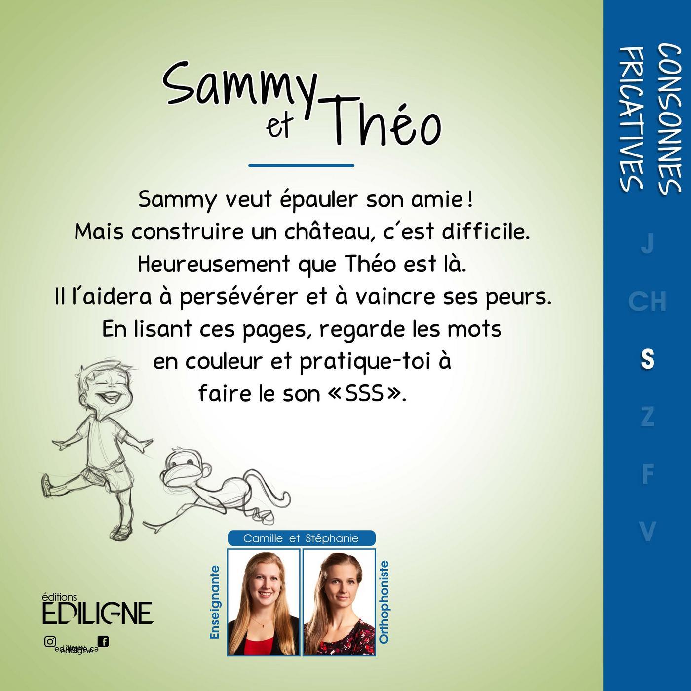 LES CONSONNES FRICATIVES Objectif orthophonique : Production du son « S » Sammy veut épauler son amie ! Mais construire un château, c’est difficile. Heureusement que Théo est là. Il l’aidera à persévérer et à vaincre ses peurs. En lisant ces pages, regarde les mots en couleur et pratique-toi à faire le son « SSS ».