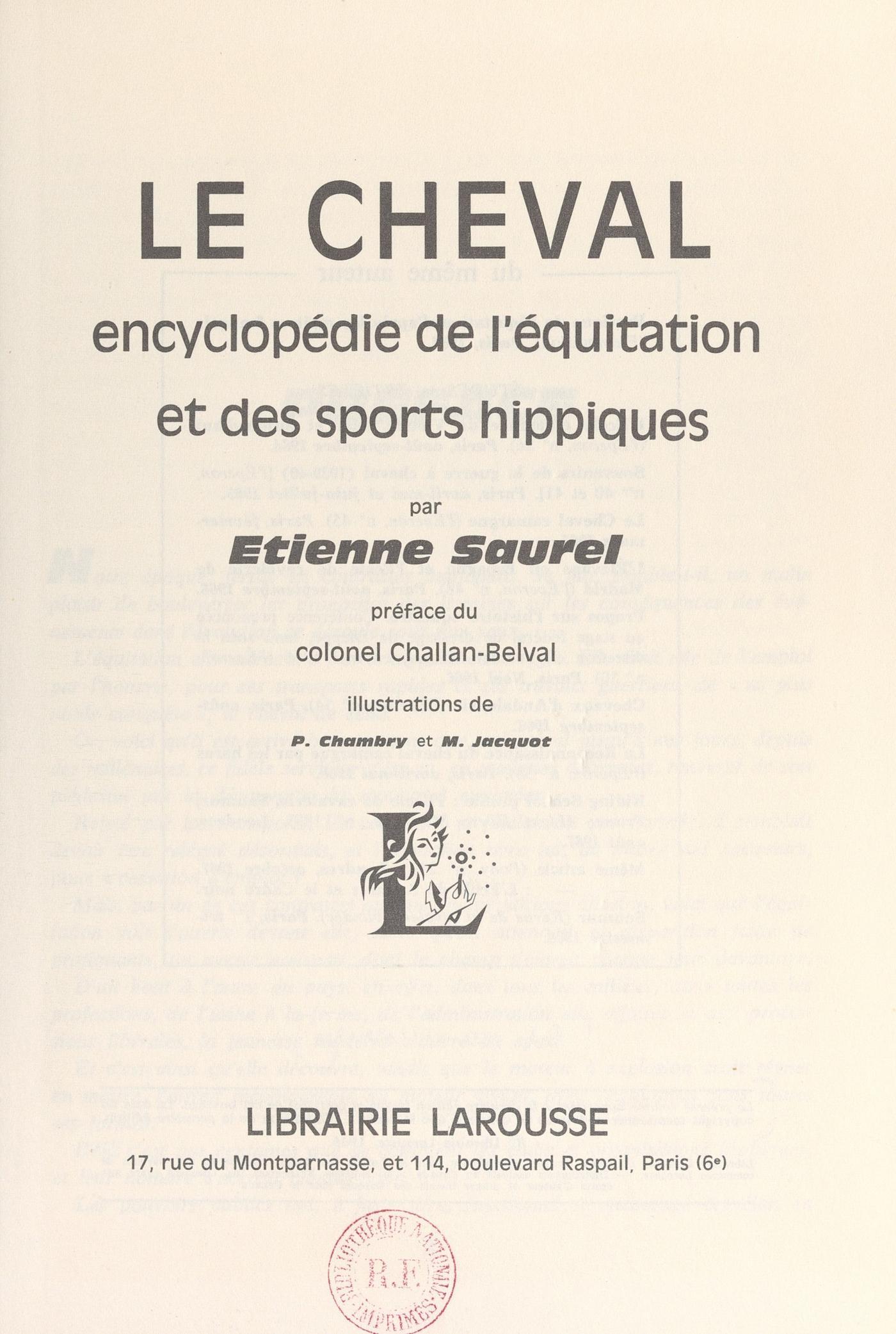 Encyclopédie de l'équitation et des sports hippiques