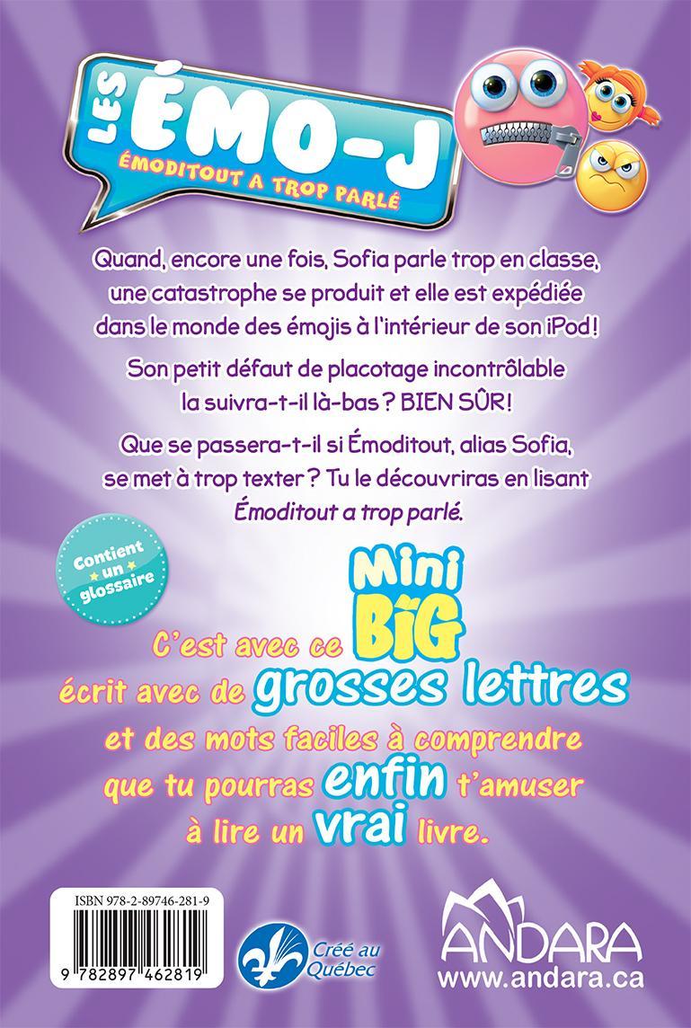Quand, encore une fois, Sofia parle trop en classe, une catastrophe se produit et elle est expédiée dans le monde des émojis à l’intérieur de son iPod ! Son petit défaut de placotage incontrôlable la suivra-t-il là-bas ? BIEN SÛR ! Que se passera-t-il si Émoditout, alias Sofia, se met à trop texter ? Tu le découvriras en lisant Émoditout a trop parlé.