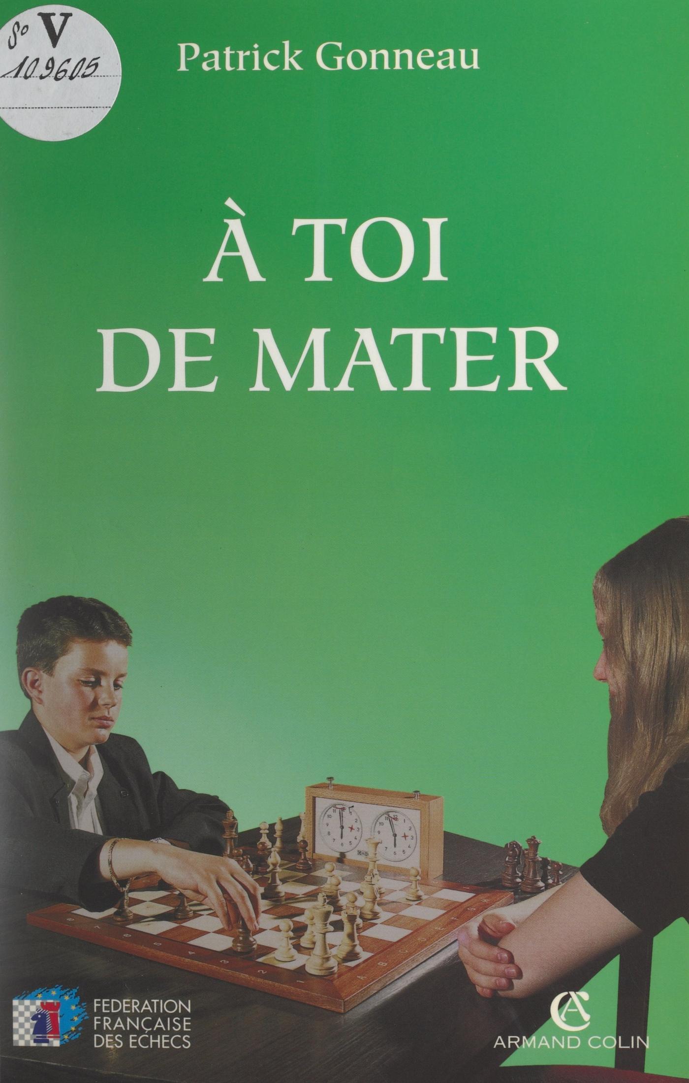 Avec ce troisième volume de Patrick Gonneau, le jeune joueur d'échecs va pouvoir mettre en pratique les principes appris dans « À toi de jouer » et « À toi de gagner ». L'auteur lui présente, sous forme de fiches d'exercices, les différentes façons de mater.Tous les grands types de mats sont passés en revue, de façon claire et progressive. Après les mats classiques, simples, que tout débutant doit connaître, les mats techniques de finales, P. Gonneau propose des mats plus complexes, parsemés de pièges divers, pour terminer par des mats résultant de combinaisons. Ces exercices permettront au joueur de retrouver un des mats étudiés en cours de partie, même dans des positions confuses.Les solutions des exercices sont données en fin d'ouvrage, avec un index de tous les mats proposés, classés par thèmes et par nombre de coups.