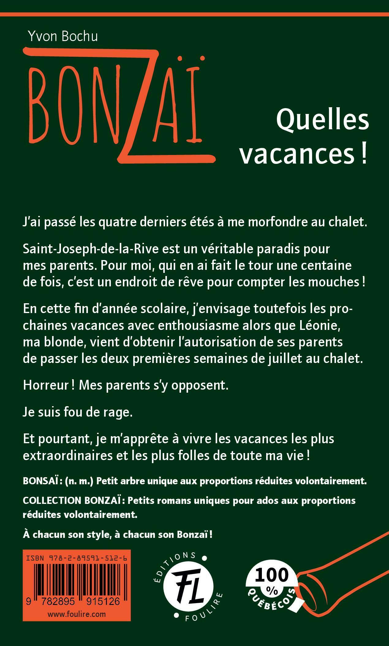 J’ai passé les quatre derniers étés à me morfondre au chalet. Saint-Joseph-de-la-Rive est un véritable paradis pour mes parents. Pour moi, qui en ai fait le tour une centaine de fois, c’est un endroit de rêve pour compter les mouches! En cette fin d’année scolaire, j’envisage toutefois les prochaines vacances avec enthousiasme alors que Léonie, ma blonde, vient d’obtenir l’autorisation de ses parents de passer les deux premières semaines de juillet au chalet. Horreur! Mes parents s’y opposent. Je suis fou de rage. Et pourtant, je m’apprête à vivre les vacances les plus extraordinaires et les plus folles de toute ma vie!On a parlé de nous :Yvon Brochu offre ici aux lecteurs de 10 ans ou plus, un court , mais non moins divertissant roman, où les temps morts, les descriptions et autres longueurs sont inexistants. Mettant en scène des personnages attachants, de magnifiques paysages et de grands émois amoureux. Une lecture idéale pour l'été.Lurelu, Myriam de Repentigny, mai 2021