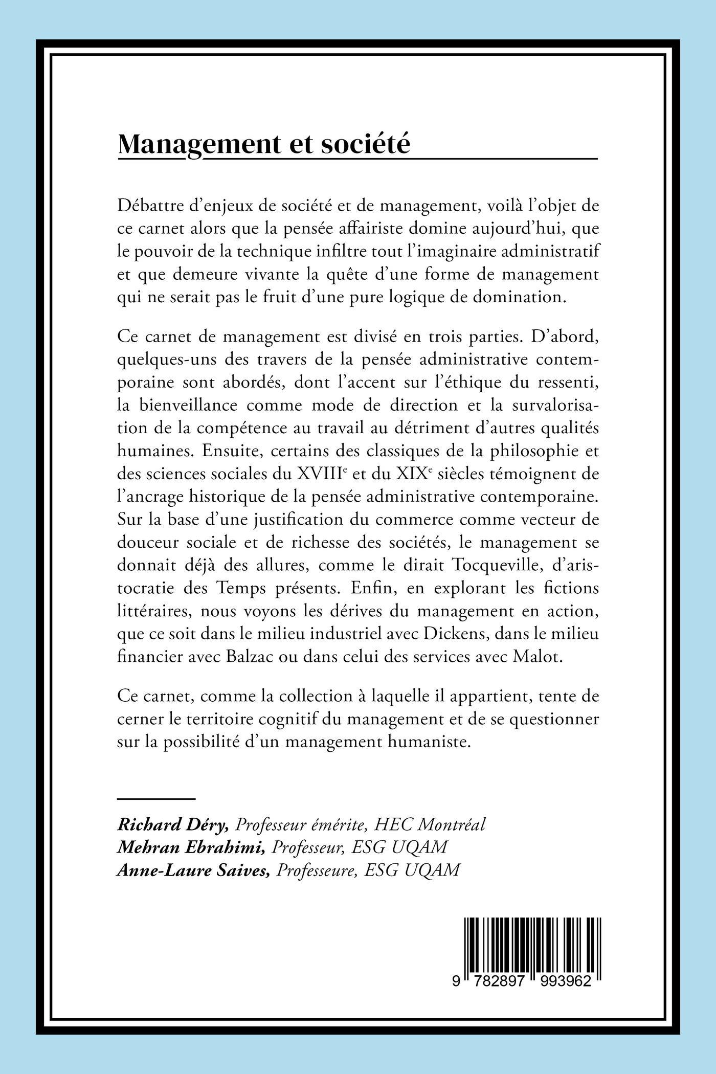 Débattre d’enjeux de société et de management, voilà l’objet de ce carnet alors que la pensée affairiste domine aujourd’hui, que le pouvoir de la technique infiltre tout l’imaginaire administratif et que demeure vivante la quête d’une forme de management qui ne serait pas le fruit d’une pure logique de domination.Ce carnet de management est divisé en trois parties. D’abord, quelques-uns des travers de la pensée administrative contemporaine sont abordés, dont l’accent sur l’éthique du ressenti, la bienveillance comme mode de direction et la survalorisation de la compétence au travail au détriment d’autres qualités humaines. Ensuite, certains des classiques de la philosophie et des sciences sociales du XVIIIe et du XIXe siècles témoignent de l’ancrage historique de la pensée administrative contemporaine. Sur la base d’une justification du commerce comme vecteur de douceur sociale et de richesse des sociétés, le management se donnait déjà des allures, comme le dirait Tocqueville, d’aristocratie des Temps présents. Enfin, en explorant les fictions littéraires, nous voyons les dérives du management en action, que ce soit dans le milieu industriel avec Dickens, dans le milieu financier avec Balzac ou dans celui des services avec Malot.Ce carnet, comme la collection à laquelle il appartient, tente de cerner le territoire cognitif du management et de se questionner sur la possibilité d’un management humaniste.