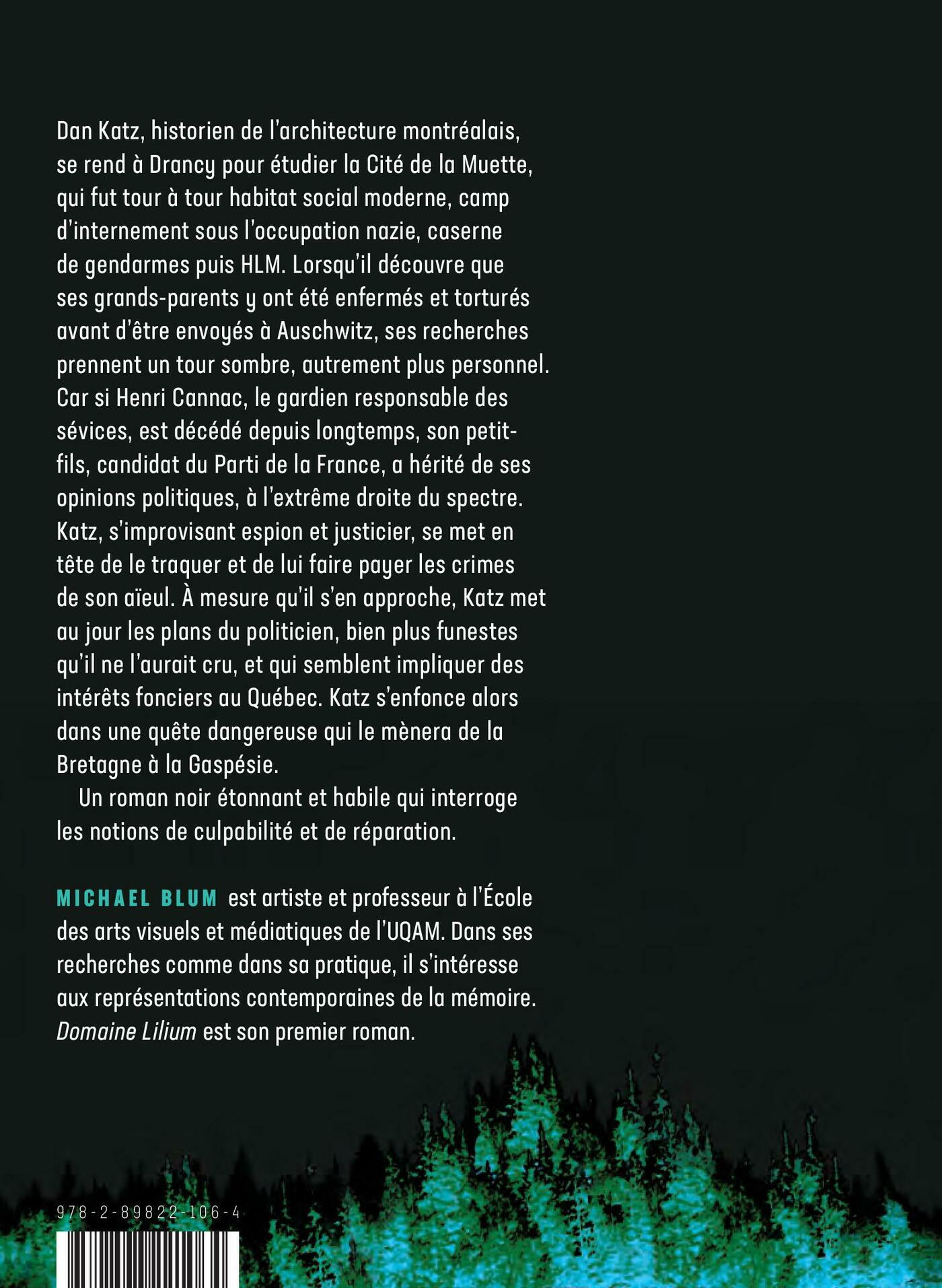 Dan Katz, historien de l’architecture montréalais, se rend à Drancy pour étudier la Cité de la Muette, qui fut tour à tour habitat social moderne, camp d’internement sous l’occupation nazie, caserne de gendarmes puis HLM. Lorsqu’il découvre que ses grands-parents y ont été enfermés et torturés avant d’être envoyés à Auschwitz, ses recherches prennent un tour sombre, autrement plus personnel. Car si Henri Cannac, le gardien responsable des sévices, est décédé depuis longtemps, son petit-fils, candidat du Parti de la France, a hérité de ses opinions politiques, à l’extrême droite du spectre. Katz, s’improvisant espion et justicier, se met en tête de le traquer et de lui faire payer les crimes de son aïeul. À mesure qu’il s’en approche, Katz met au jour les plans du politicien, bien plus funestesqu’il ne l’aurait cru, et qui semblent impliquer des intérêts fonciers au Québec. Katz s’enfonce alors dans une quête dangereuse qui le mènera de la Bretagne à la Gaspésie.Un roman noir étonnant et habile qui interroge les notions de culpabilité et de réparation.
