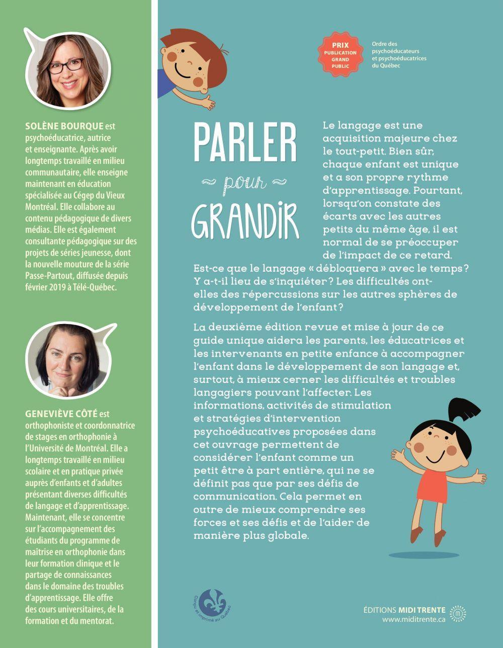 Le langage est une acquisition majeure chez le tout-petit. Bien sûr, chaque enfant est unique et a son propre rythme d’apprentissage. Pourtant, lorsqu’on constate des écarts avec les autres petits du même âge, il est normal de se préoccuper de l’impact de ce retard. Est-ce que le langage « débloquera » avec le temps ? Y a-t-il lieu de s’inquiéter ? Les difficultés ont-elles des répercussions sur les autres sphères de développement de l’enfant ?La deuxième édition revue et mise à jour de ce guide unique aidera les parents, les éducatrices et les intervenants en petite enfance à accompagner l’enfant dans le développement de son langage et, surtout, à mieux cerner les difficultés et troubles langagiers pouvant l’affecter. Les informations, activités de stimulation et stratégies d’intervention psychoéducatives proposées dans cet ouvrage permettent de considérer l’enfant comme un petit être à part entière, qui ne se définit pas que par ses défis de communication. Cela permet en outre de mieux comprendre ses forces et ses défis et de l’aider de manière plus globale.