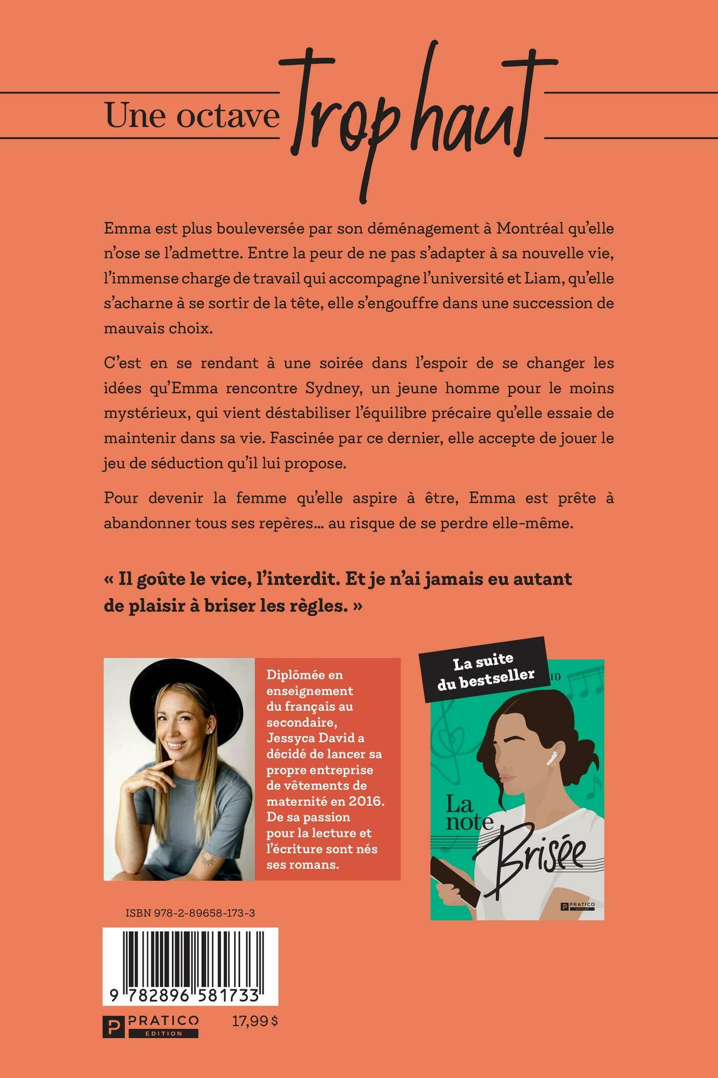 Emma est plus bouleversée par son déménagement à Montréal qu’elle n’ose se l’admettre. Entre la peur de ne pas s’adapter à sa nouvelle vie, l’immense charge de travail qui accompagne l’université et Liam, qu’elle s’acharne à se sortir de la tête, elle s’engouffre dans une succession de mauvais choix.C’est en se rendant à une soirée dans l’espoir de se changer les idées qu’Emma rencontre Sydney, un jeune homme pour le moins mystérieux, qui vient déstabiliser l’équilibre précaire qu’elle essaie de maintenir dans sa vie. Fascinée par ce dernier, elle accepte de jouer le jeu de séduction qu’il lui propose. Pour devenir la femme qu’elle aspire à être, Emma est prête à abandonner tous ses repères… au risque de se perdre elle-même.« Il goûte le vice, l’interdit. Et je n’ai jamais eu autant de plaisir à briser les règles. »