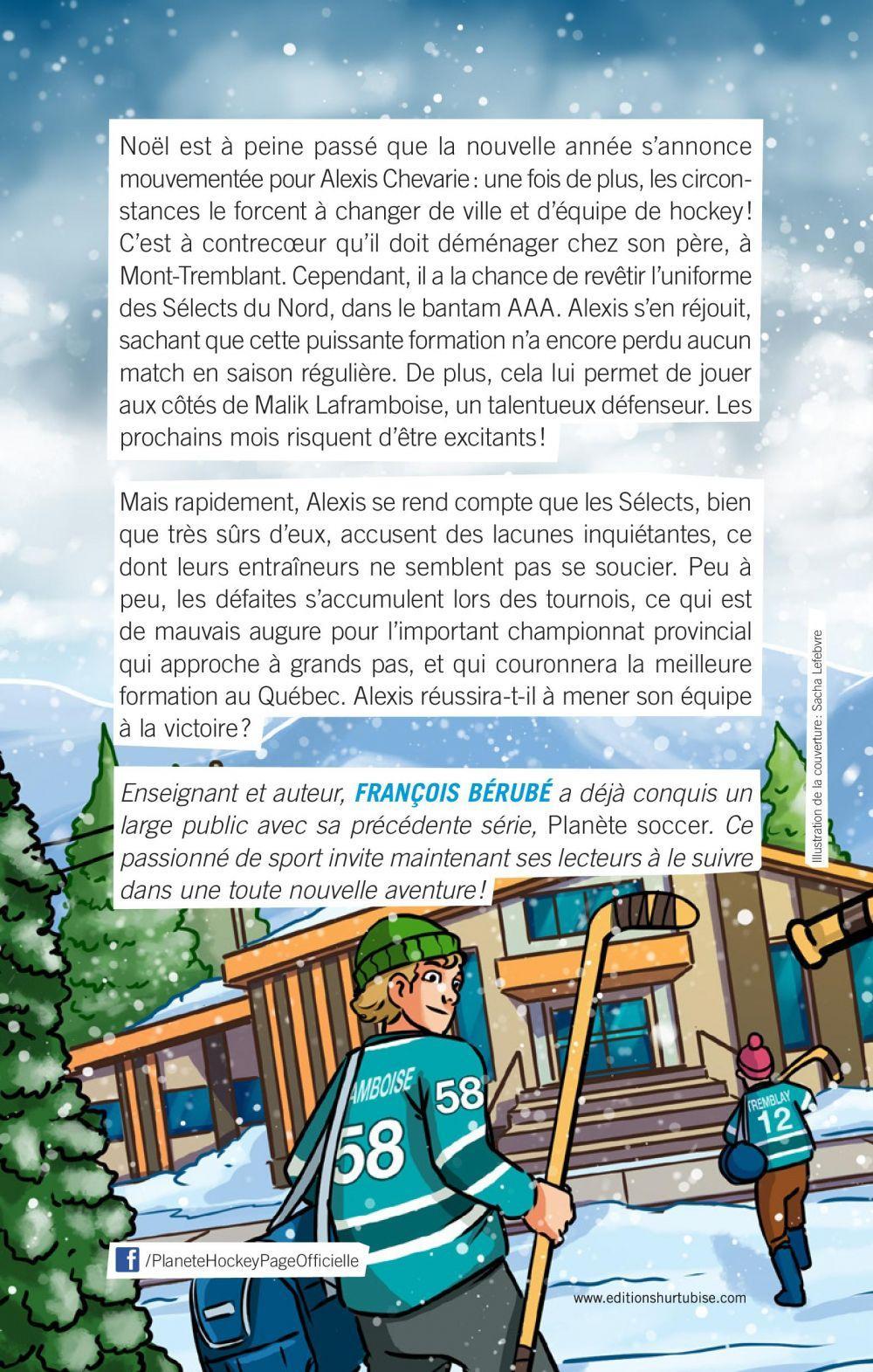 Noël est à peine passé que la nouvelle année s’annonce mouvementée pour Alexis Chevarie: une fois de plus, les circonstances le forcent à changer de ville et d’équipe de hockey! C’est à contrecœur qu’il doit déménager chez son père, à Mont-Tremblant. Cependant, il a la chance de revêtir l’uniforme des Sélects du Nord, dans le bantam AAA. Alexis s’en réjouit, sachant que cette puissante formation n’a encore perdu aucun match en saison régulière. De plus, cela lui permet de jouer aux côtés de Malik Laframboise, un talentueux défenseur. Les prochains mois risquent d’être excitants!Mais rapidement, Alexis se rend compte que les Sélects, bien que très sûrs d’eux, accusent des lacunes inquiétantes, ce dont leurs entraîneurs ne semblent pas se soucier. Peu à peu, les défaites s’accumulent lors des tournois, ce qui est de mauvais augure pour l’important championnat provincial qui approche à grands pas, et qui couronnera la meilleure formation au Québec. Alexis réussira-t-il à mener son équipe à la victoire?