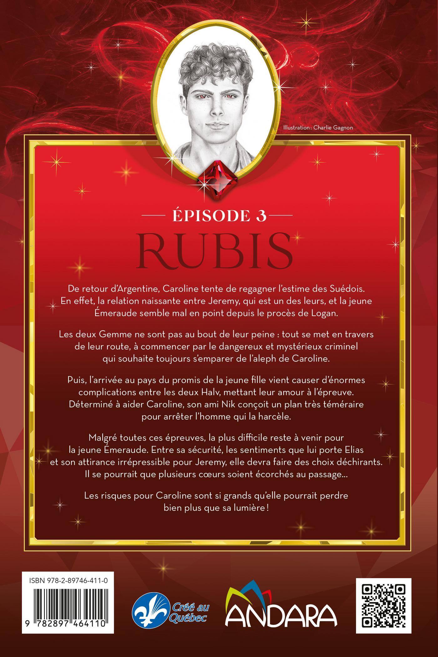 De retour d’Argentine, Caroline tente de regagner l’estime des Suédois. En effet, la relation naissante entre Jeremy, qui est un des leurs, et la jeune Émeraude semble mal en point depuis le procès de Logan.Les deux Gemme ne sont pas au bout de leur peine : tout se met en travers de leur route, à commencer par le dangereux et mystérieux criminel qui souhaite toujours s’emparer de l’aleph de Caroline.Puis, l’arrivée au pays du promis de la jeune fille vient causer d’énormes complications entre les deux Halv, mettant leur amour à l’épreuve. Déterminé à aider Caroline, son ami Nik conçoit un plan très téméraire pour arrêter l’homme qui la harcèle.Malgré toutes ces épreuves, la plus difficile reste à venir pour la jeune Émeraude. Entre sa sécurité, les sentiments que lui porte Elias et son attirance irrépressible pour Jeremy, elle devra faire des choix déchirants. Il se pourrait que plusieurs cœurs soient écorchés au passage…Les risques pour Caroline sont si grands qu’elle pourrait perdre bien plus que sa lumière !