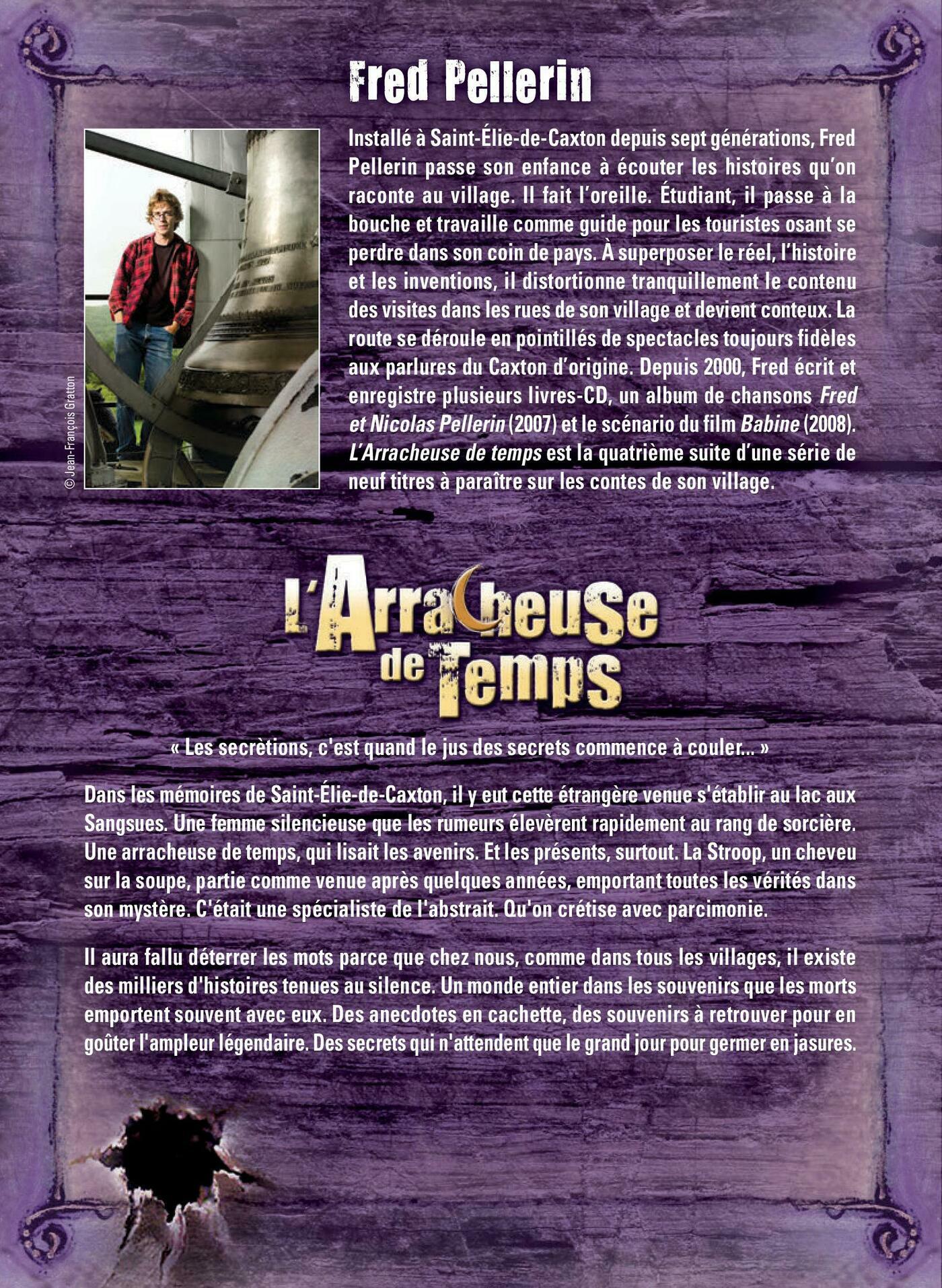« Les secrètions, c'est quand le jus des secrets commence à couler... » Dans les mémoires de Saint-Élie-de-Caxton, il y eut cette étrangère venue s'établir au lac aux Sangsues. Une femme silencieuse que les rumeurs élevèrent rapidement au rang de sorcière. Une arracheuse de temps, qui lisait les avenirs. Et les présents, surtout. La Stroop, un cheveu sur la soupe, partie comme venue après quelques années, emportant toutes les vérités dans son mystère. C'était une spécialiste de l'abstrait. Qu'on crétise avec parcimonie. Il aura fallu déterrer les mots parce que chez nous, comme dans tous les villages, il existe des milliers d'histoires tenues au silence. Un monde entier dans les souvenirs que les morts emportent souvent avec eux. Des anecdotes en cachette, des souvenirs à retrouver pour en goûter l'ampleur légendaire. Des secrets qui n'attendent que le grand jour pour germer en jasures