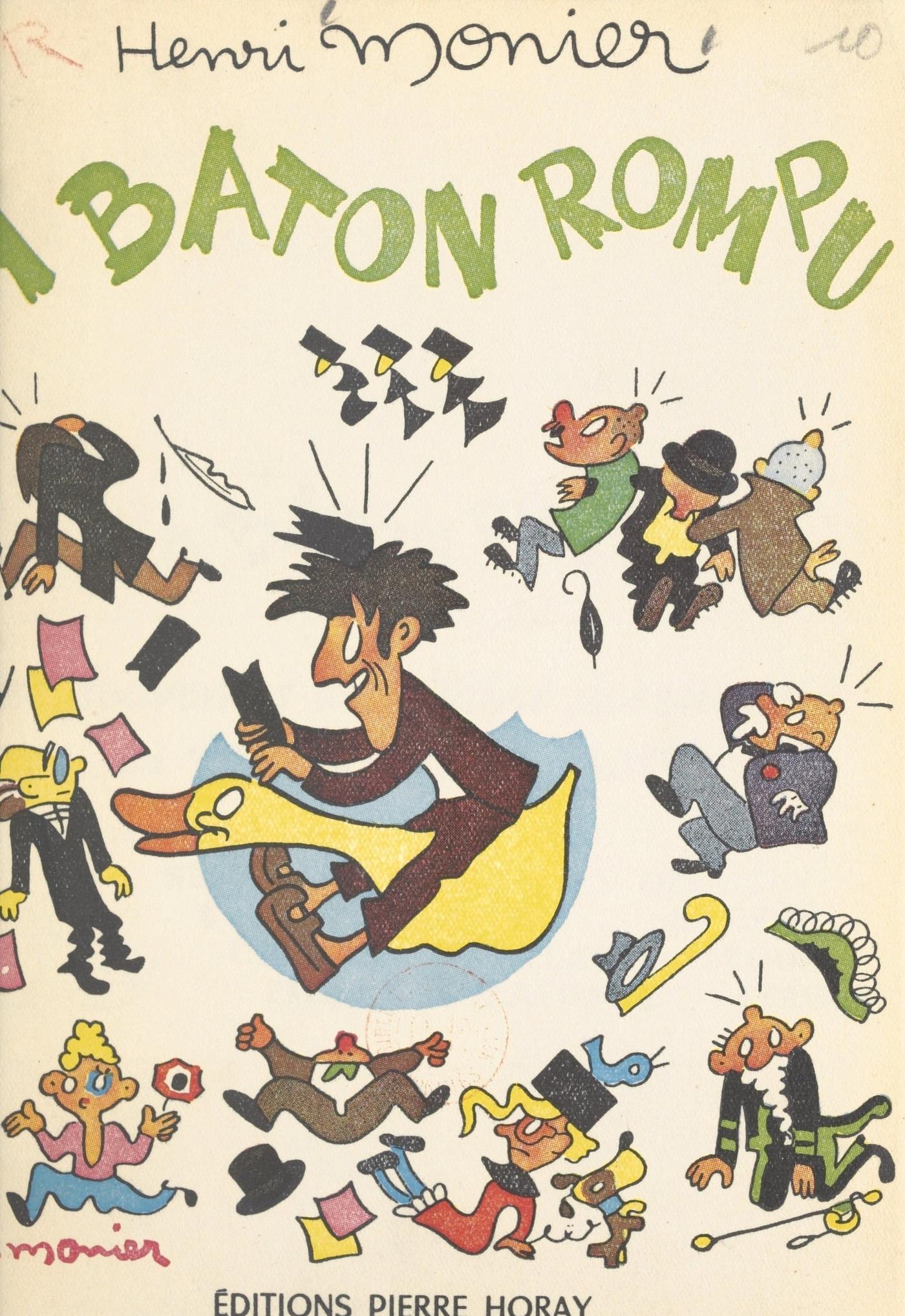 Henri Monier nous conte ses souvenirs. S’il ne s’attarde guère à ses « premiers pas » dans l’existence — encore que ce qu’il nous en dit est plein de saveur et de drôlerie — c’est que visiblement il a hâte de parler de ses amis (et aussi... des autres), de ses trente ans passés dans les coulisses du journalisme parisien. Et, bien entendu, c’est d’abord « le Canard Enchaîné » auquel Henri Monier collabore depuis 1919 (il venait alors d’avoir dix-huit ans), que celui-ci fait revivre pour notre joie : les débuts modestes dans l’appartement de son directeur Maurice Maréchal, l’installation rue Louis-le-Grand et sa succursale : le café du Cadran. — ce qui nous conduit tout naturellement à « l’Œuvre », de Gustave Téry, « l’enfant terrible des journaux de cette époque ». Henri Monier fait défiler devant nous, avec malice, mais sans méchanceté, les vedettes de la presse de l’entre-deux-guerres (sans oublier pourtant ses cadets) ; il nous fait participer à la vie des salles de rédaction, à leur travail et aussi à leurs farces ; il nous promène dans Paris, avec une tendresse marquée pour les « originaux » qu’on y peut rencontrer, et aussi hors Paris, avec quelques gais compagnons, là où il fait bon boire et bien manger. Tour à tour témoin et acteur, Henri Monier a écrit un livre sans prétention, un livre de bonne humeur et de bonne santé, où les anecdotes, les portraits et les mots abondent. Le plaisir que visiblement Henri Monier a pris à évoquer ses souvenirs, anciens et récents, le lecteur ne peut manquer de le partager : il trouvera dans ces pages, la verve, l’humour, l’indépendance, la vigueur du trait et le mouvement qui ont fait la renommée d’Henri Monier dessinateur. En outre, A BATON ROMPU est copieusement illustré par les amis d’Henri Monier : Becan, Bib, Cabrol, Ferjac, Gassier, Grove, Guilac, Laforge, Oberle, Sennep, Seoul, Serge, et par lui-même.