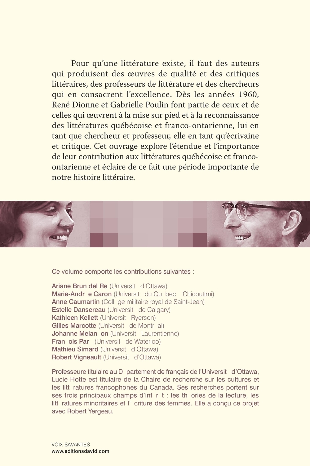 Emir Delic, Pierre Nepveu, Patrice Desbiens, Marc André Brouillette, Thierry Bissonnette, Frédéric Rondeau, François Paré, Lucie Hotte, Mathieu Simard, Jean Marc Larivière, Christine Duff, Yves Jubinville, DOMINIQUE GARAND, Denise Brassard, MARIE PARENT